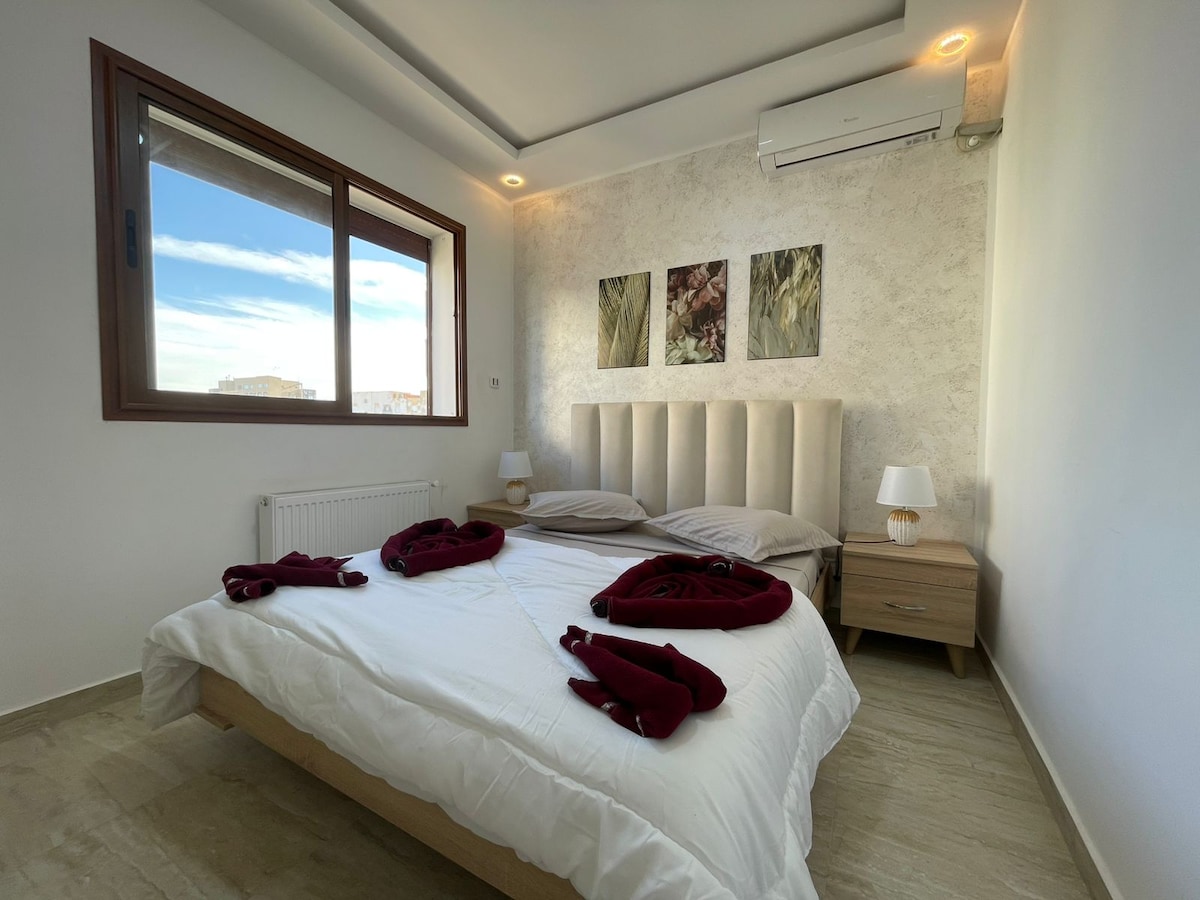 Descubre un lujoso apartamento con vistas al mar en el corazón de la ciudad. Despiértate con vistas panorámicas al Mediterráneo desde dos dormitorios y disfruta de un café en una impresionante terraza con vistas a la costa. Ubicado cerca de La Medina y a pocos minutos en taxi de Port El Kantaoui, este elegante espacio ofrece muebles de alta gama, una cocina bien equipada, wifi, Smart TV y comodidades modernas. Dos dormitorios tamaño king, un baño de estilo italiano y un espacio de trabajo garantizan un refugio urbano perfecto con fácil acceso a cafés, restaurantes y bares.