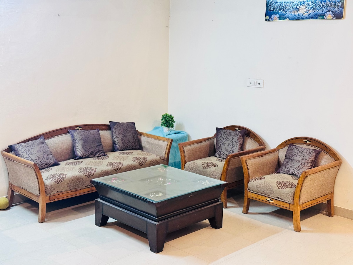 Unwind and feel peace within you at our beautiful Airbnb in the heart of Noida with a modern outdoor jacuzzi. Inside, you'll find a cozy living area, a fully equipped kitchen, and three cosy bedrooms equipped with all amenities. Whether you're relaxing on the rooftop patio or enjoying the soothing waters of jacuzzi, the House of Zen provides a peaceful and unforgettable stay. As it is centrally located all online food or grocery services work here.