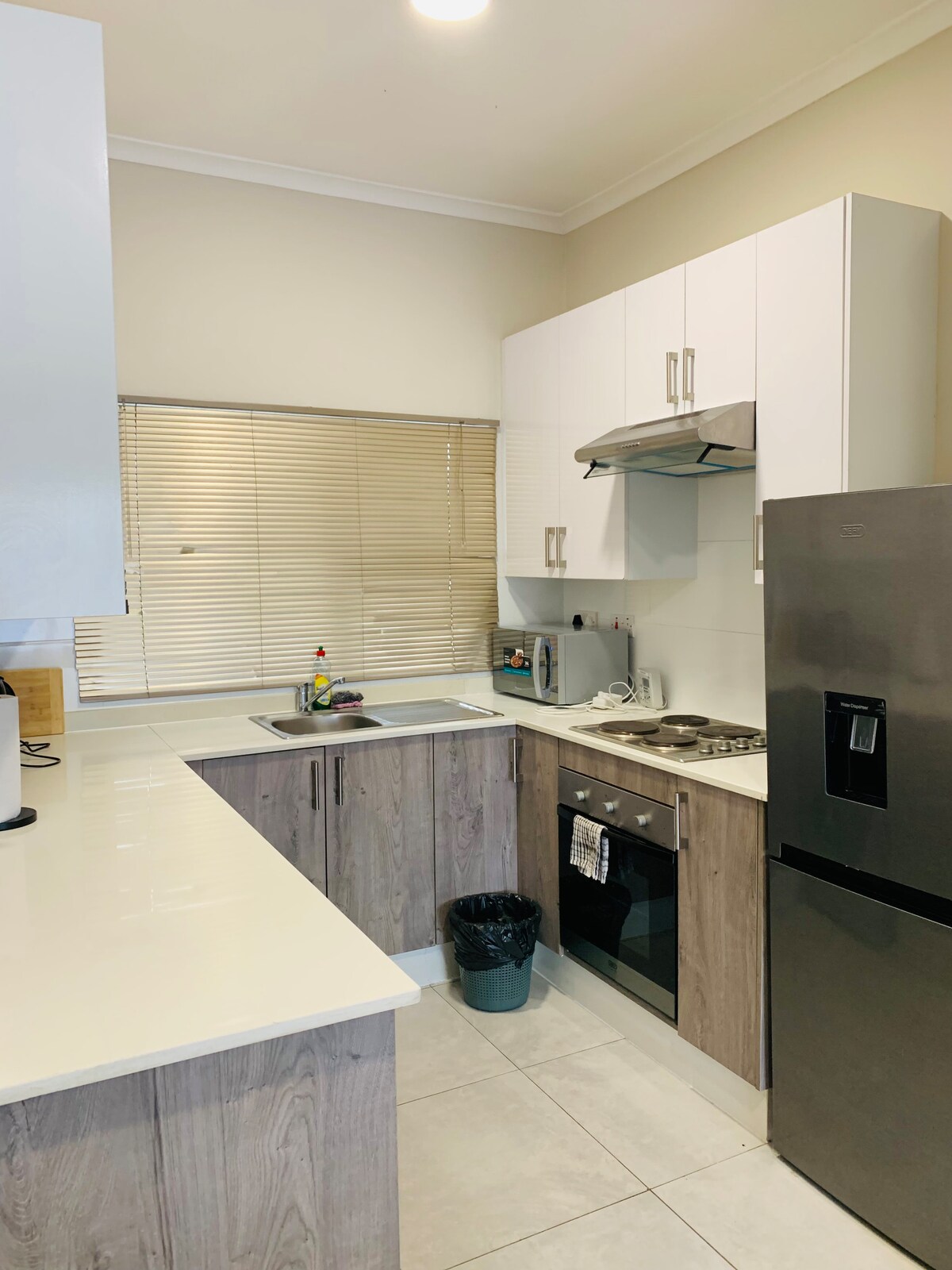 Escápate a White Rose Villa, un sereno refugio de tres dormitorios que combina comodidad y estilo. Situado a pocos minutos del centro comercial Airport Junction, el CBD y el aeropuerto, es ideal para negocios o placer. Relájate en el acogedor salón con Smart TV, Netflix y wifi Starlink, o cocina en la cocina totalmente equipada. Sal a la piscina, el patio y el área de braai; perfecto para el café al amanecer o la risa al atardecer. Disfruta de estacionamiento seguro, alarma las 24 horas y limpieza profesional para estadías más largas.