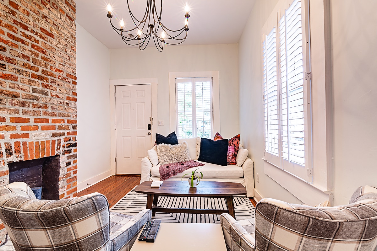 Built in 1872, this 960 sq/ft, stunning garden apartment located on W. Bolton Street has a spacious family room, a large bedroom, bathroom as well as a full sized kitchen. This historic home features exposed brick walls, original hardwood floors and gorgeous fireplaces in each room. Completely renovated, enjoy the beautifully landscaped courtyard with fire pit, or “porch” Savannah style on your very own private screened porch. Located just TWO blocks from Forsyth Park in the heart of Savannah.