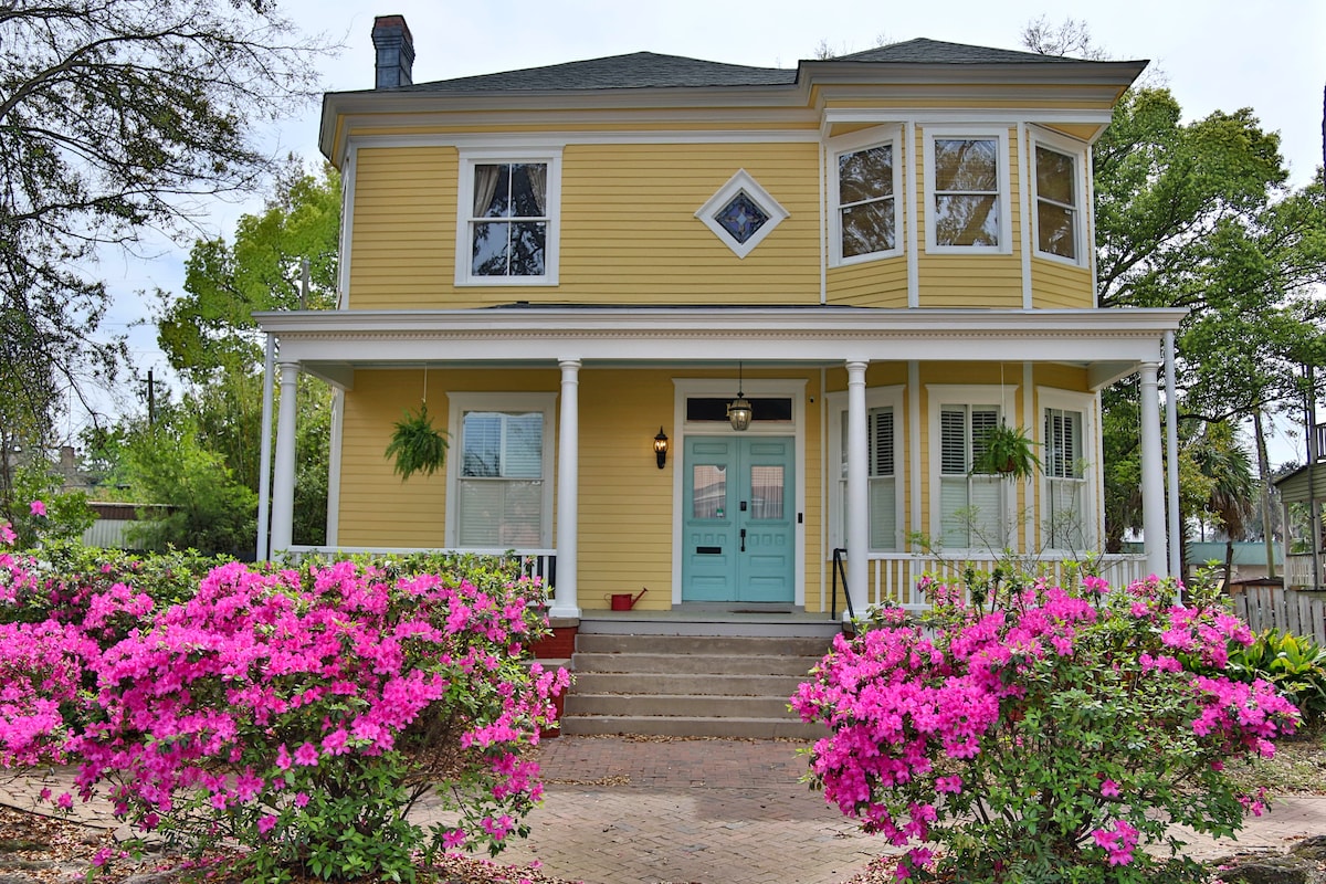 Stay in a gorgeous classic revival home built in 1895 in Downtown Savannah, on a historic brick street, shaded by a canopy of Savannah oaks, and surrounded by other historic properties. Make yourself a mint julep with fresh mint from the garden, sit on the front porch facing a front yard filled with pink, white, and purple Azaleas, and wonder what it must've been like in 1895. Most central location: Walk to Starland Arts District, Forsyth Park, Broughton Street, and River Street.