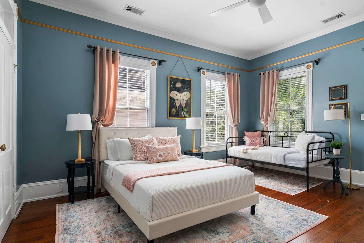 Uno de nuestros alquileres vacacionales más acogedores en Savannah es Bird Baldwin Forsyth Suite. Esta unidad es perfecta para las vacaciones de parejas en Georgia o para un viaje de negocios para una persona soltera. La suite Bird Baldwin Forsyth tiene un dormitorio con cama tamaño king y un baño. Al igual que todas nuestras casas de vacaciones Savannah, la ubicación es extremadamente conveniente con estacionamiento privado en Liberty Street. Está cerca de todas las tiendas, los tostadores de café Savannah, Mellow Mushroom y el resto del distrito histórico.