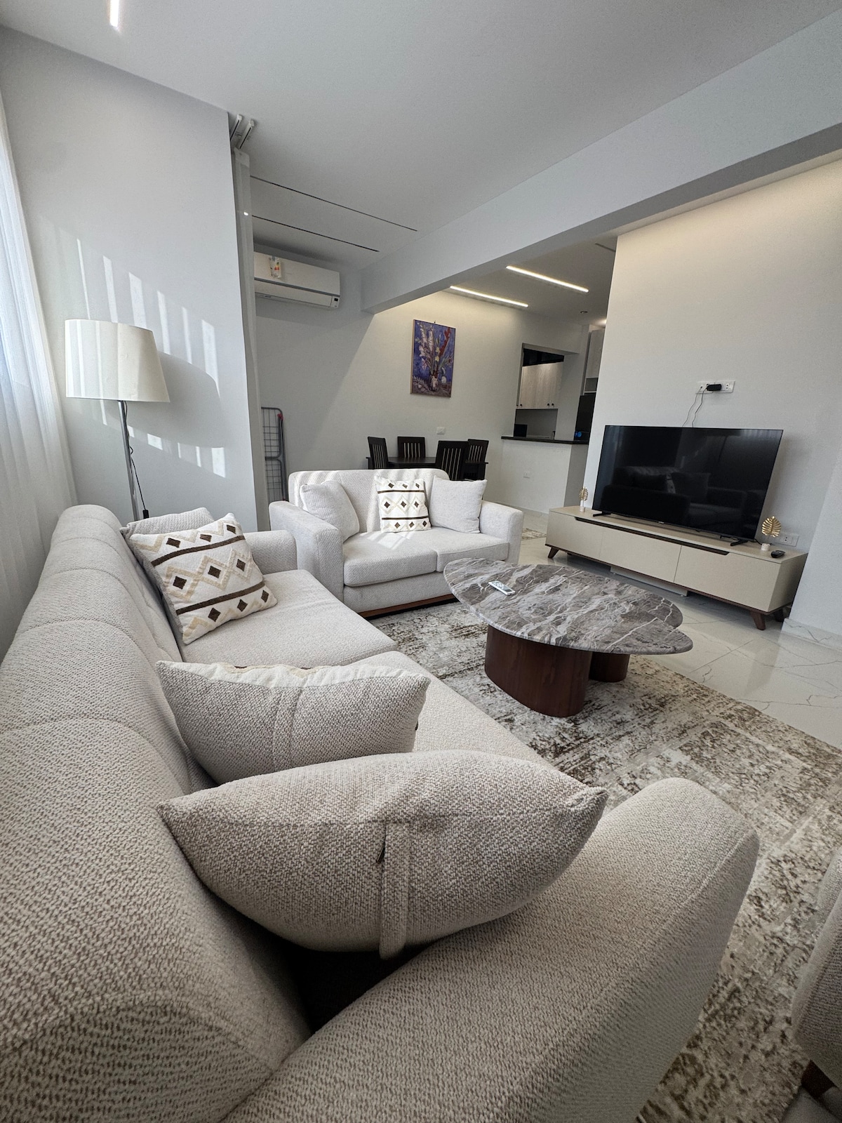 Disfruta de una estancia lujosa y cómoda en este tranquilo apartamento de 2 dormitorios ubicado dentro de un complejo tranquilo y seguro con seguridad 24/7. El departamento está cuidadosamente diseñado con muebles modernos, amplios dormitorios y un ambiente relajante ideal para descansar y tener privacidad. Su entorno tranquilo lo hace perfecto para familias, parejas o viajeros de negocios. Convenientemente ubicado cerca del aeropuerto, los principales centros comerciales y las principales atracciones, ofrece un fácil acceso al tiempo que garantiza una estancia segura, tranquila y agradable.