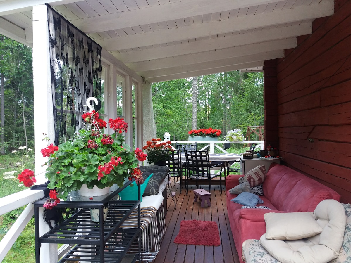 Esta acogedora cabaña te da la bienvenida para pasar escapadas relajantes y estancias de trabajo a distancia más largas en medio de la hermosa y tranquila naturaleza finlandesa. La cabaña tiene dos espaciosas cabinas, una cocina bien equipada y una buena sauna. El encantador estanque para nadar está a solo unos pasos y escaleras de la cabaña. Hay buen wifi, un gran césped soleado y no hay vecinos a la vista, por lo que puedes nadar en tu traje de cumpleaños si quieres :) La tienda de comestibles más cercana está a 12 minutos en coche.