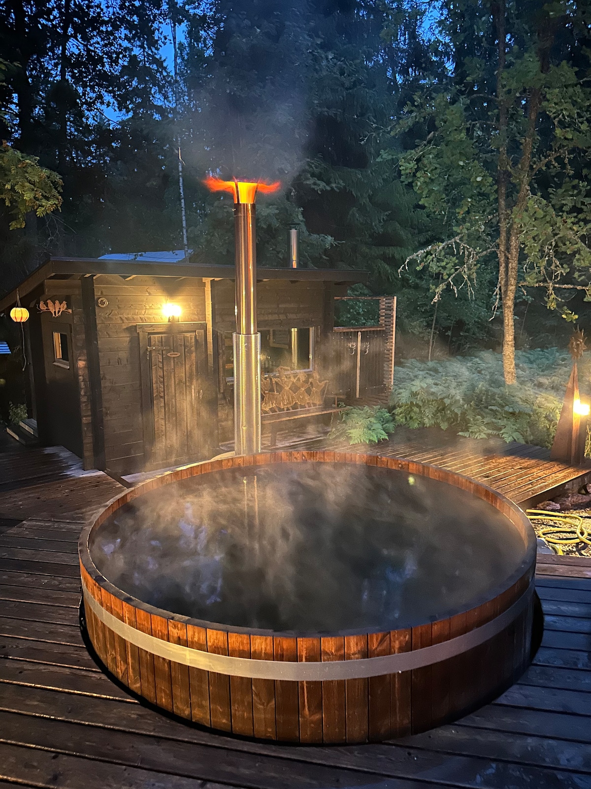 A place to stay and remote work in the nature, next to hiking trails, conveniently close to larger cities. Separately bookable 5-person jacuzzi. 1-2 night stays 60€ 3-4 night stays 80€ For longer stays the price can be negotiated separately. Send us a message if you wish to book the jacuzzi with your stay. This destination is especially suitable for: -Travelers with pets -A place to relax for nature lovers -Place to hang out with friends
