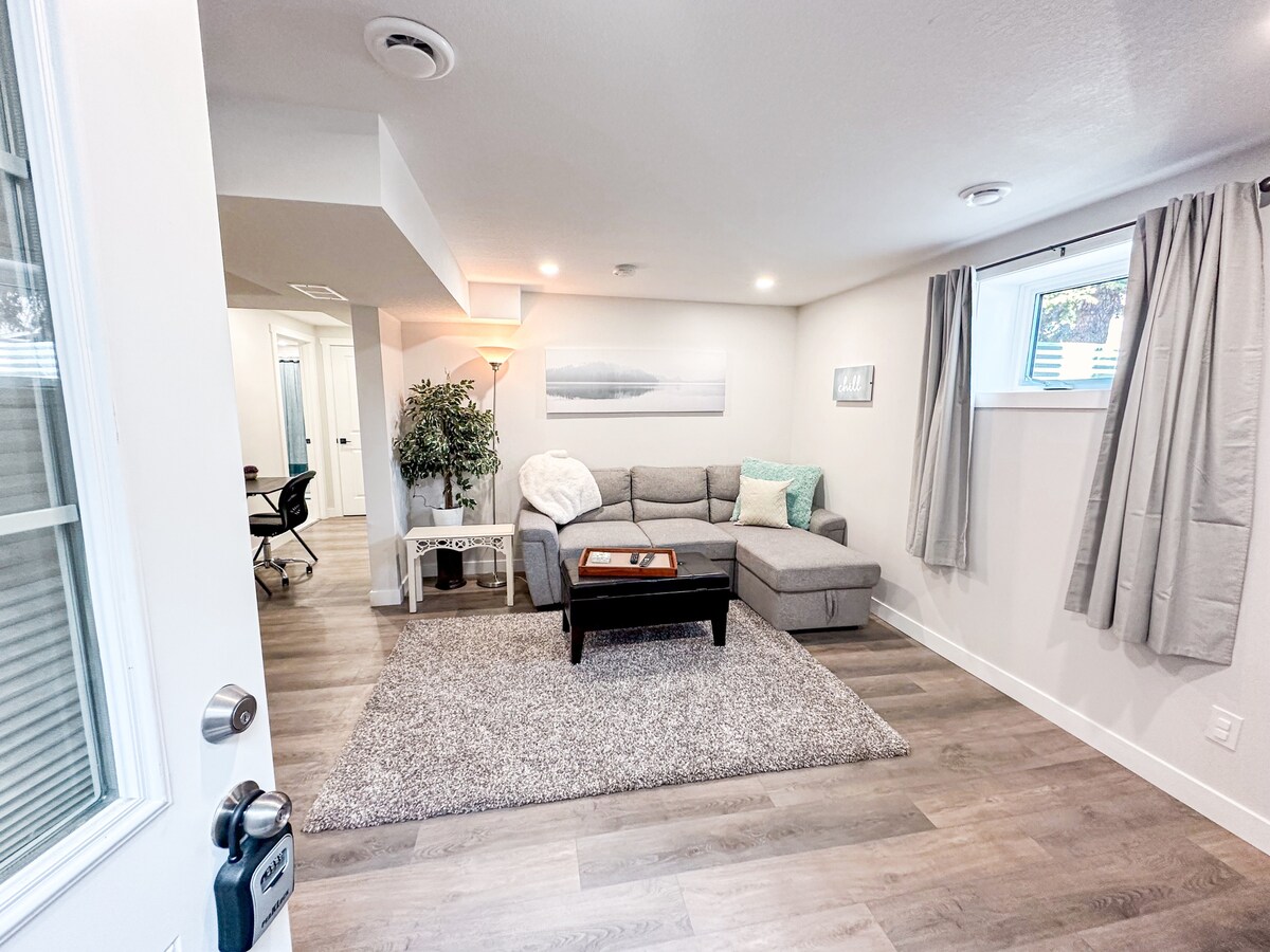 Cálida suite de 1 dormitorio en el norte de Calgary, a 15 minutos de YYC