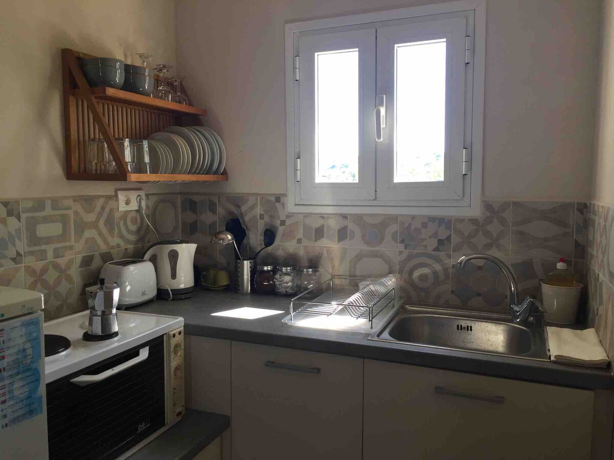 Meliti es una casa de campo de una planta que consta de 1 dormitorio con capacidad para 2 personas con baño privado. Puede alojar a 1 huésped adicional en el sofá cama de la sala de estar, o un máximo de 2 niños. La casa ofrece increíbles vistas al mar desde todas las áreas, especialmente la vista desde la cama será memorable. Relájate en la acogedora sala de estar, prepara la cena o relájate en los muebles exteriores disfrutando de una serenidad total, así como del relajante sonido del mar.