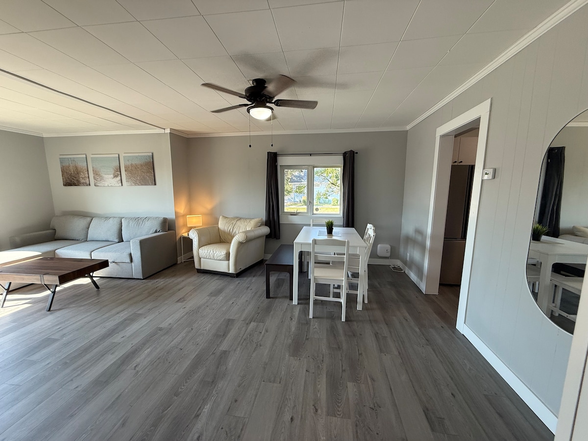 ¡Relájate y recarga energías en esta espaciosa y céntrica suite de 3 dormitorios! Camas tamaño queen en cada habitación y totalmente equipadas para una estancia cómoda. Cocina completa con todo lo que necesitas para preparar una comida, una gran sala de estar y comedor, un amplio baño con tocador doble y ducha de pie, además de lavadora y secadora en la suite. Sal a tu oasis privado en el patio trasero con chimenea y asientos en el patio, perfecto para las noches bajo las estrellas. Aparcamiento privado fuera de la calle incluido. ¡Tu hogar ideal lejos de casa!
