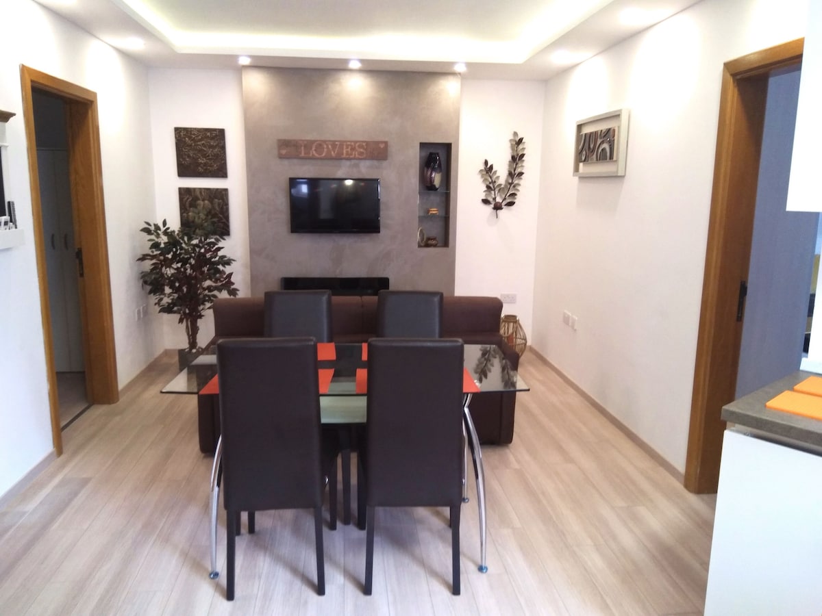 Apartamento de inspiración parisina en el corazón de la isla, a 5 minutos de la capital histórica, La Valeta y también a 5 minutos de la vida nocturna eléctrica de St. Julians. Un espacio de lujo donde la comodidad y el lujo se encuentran: departamento de 3 dormitorios y 3 baños con 2 salas de estar, una de las cuales está equipada con un bar. El departamento cuenta con WiFi estándar del hotel, lavandería. El departamento es un espacio para autos. La ropa de cama utilizada es por The White Company y jabón de AESOP.