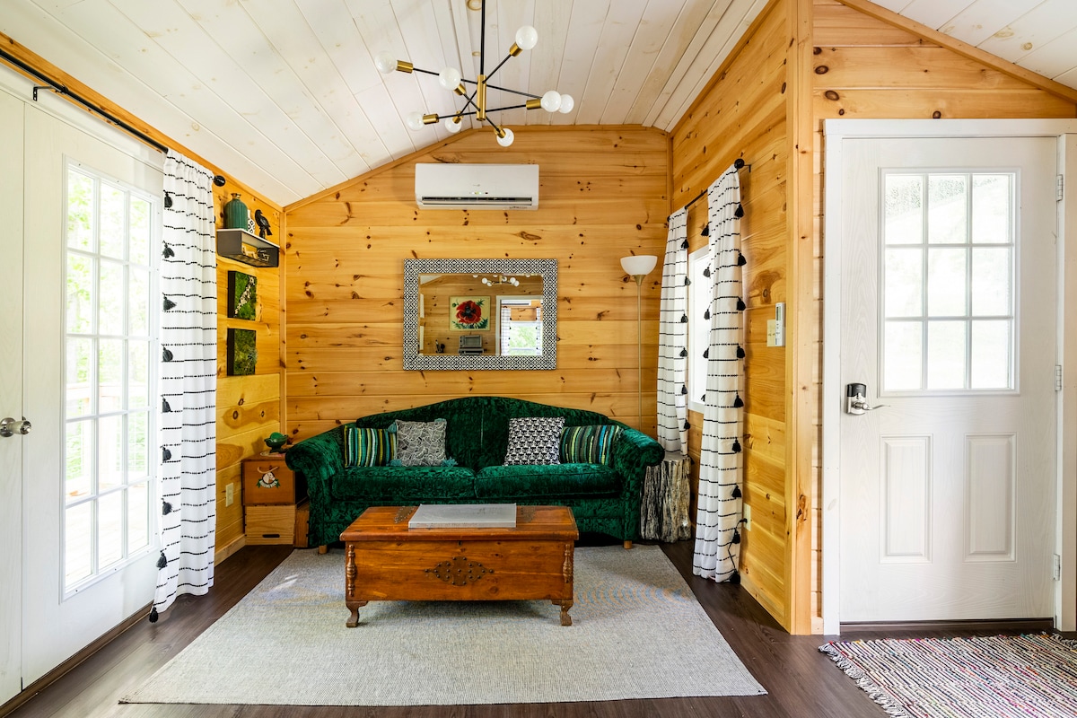Desconecta de la rutina en esta cabaña de troncos única y relajante con aire acondicionado/calefacción central y entrada sin llave. La sala de estar cuenta con TV inteligente de 55 pulgadas con Roku, nevera pequeña, microondas y cafetera Keurig. Es un lugar ideal para trabajar a distancia. El dormitorio Queen tiene una Smart TV y un escritorio. Tienes una plaza de aparcamiento cubierta y acceso al porche delantero de la casa principal con una mesa pequeña y 2 sillas, columpio y mecedoras. No se admiten mascotas ni se permite fumar, por favor. Tenemos alergias.