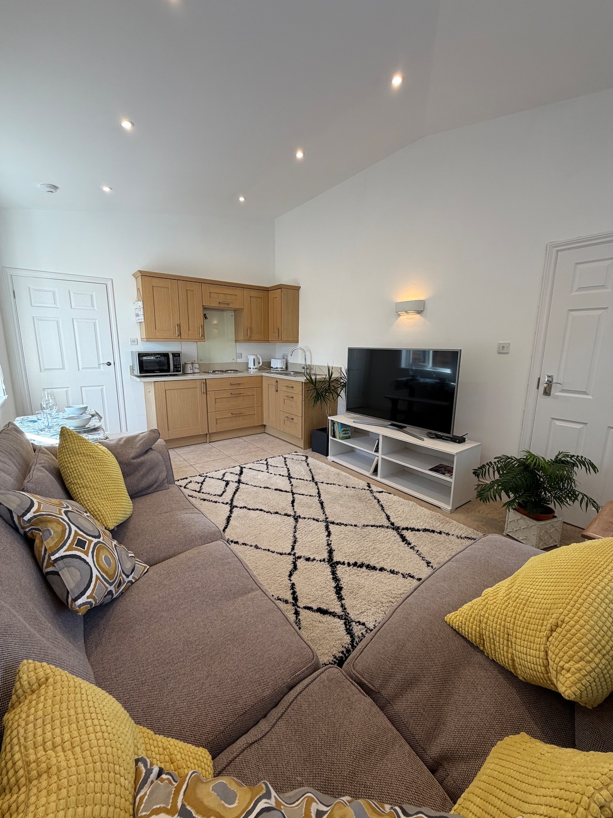 ¡Te damos la bienvenida a nuestra moderna y espaciosa casa de campo de 2 dormitorios! Cuenta con dos habitaciones dobles muy grandes, una con una cama tamaño king que se puede dividir en individuales. El elegante baño incluye una ducha a ras de suelo y una bañera. La planta baja tiene una gran sala de estar espaciosa con un escritorio y chimenea integrados, y un amplio comedor de cocina que se abre a un jardín privado con una terraza, césped y asientos, con vistas a un campo de flores silvestres. Disfruta de aparcamiento fuera de la calle para un coche en un encantador entorno rural.