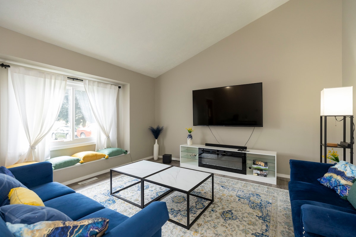 ¡Esta espaciosa casa de 5 dormitorios y 2 baños está a poco menos de una milla del estadio Notre Dame! Ubicado entre el campus de Notre Dame, Eddy Street y el centro de South Bend, está a poca distancia a pie de partidos de fútbol, portones y eventos. Disfruta del patio trasero con un jacuzzi de lujo, chimenea y un acogedor patio. En el interior, relájate con 7 televisores inteligentes, 2 salas de estar, 2 cocinas y un espacio de oficina dedicado. Perfecto para el juego o un retiro familiar, combinando comodidad, conveniencia y una ubicación inmejorable.