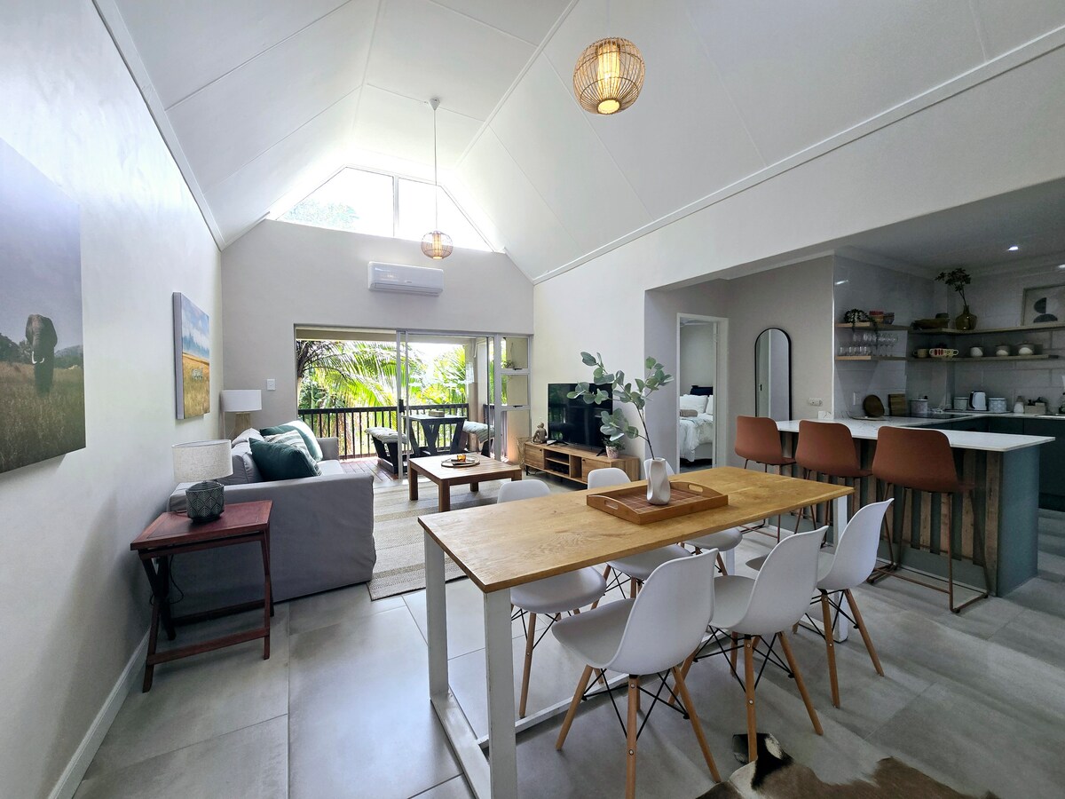 Un apartamento independiente bien equipado. El dormitorio principal tiene una cama tamaño king, que se puede convertir en dos camas individuales y el salón tiene una litera individual. Baño privado con ducha. El dormitorio tiene ventilador de techo y la sala de estar tiene ventilador de techo y aire acondicionado (medidor). Hay una pequeña zona exterior con un juego de jardín. Braai disponible previa solicitud. Ashley es una guía que trabaja dentro de la industria turística de Santa Lucía y puede ofrecer excelentes conocimientos y consejos sobre la zona.