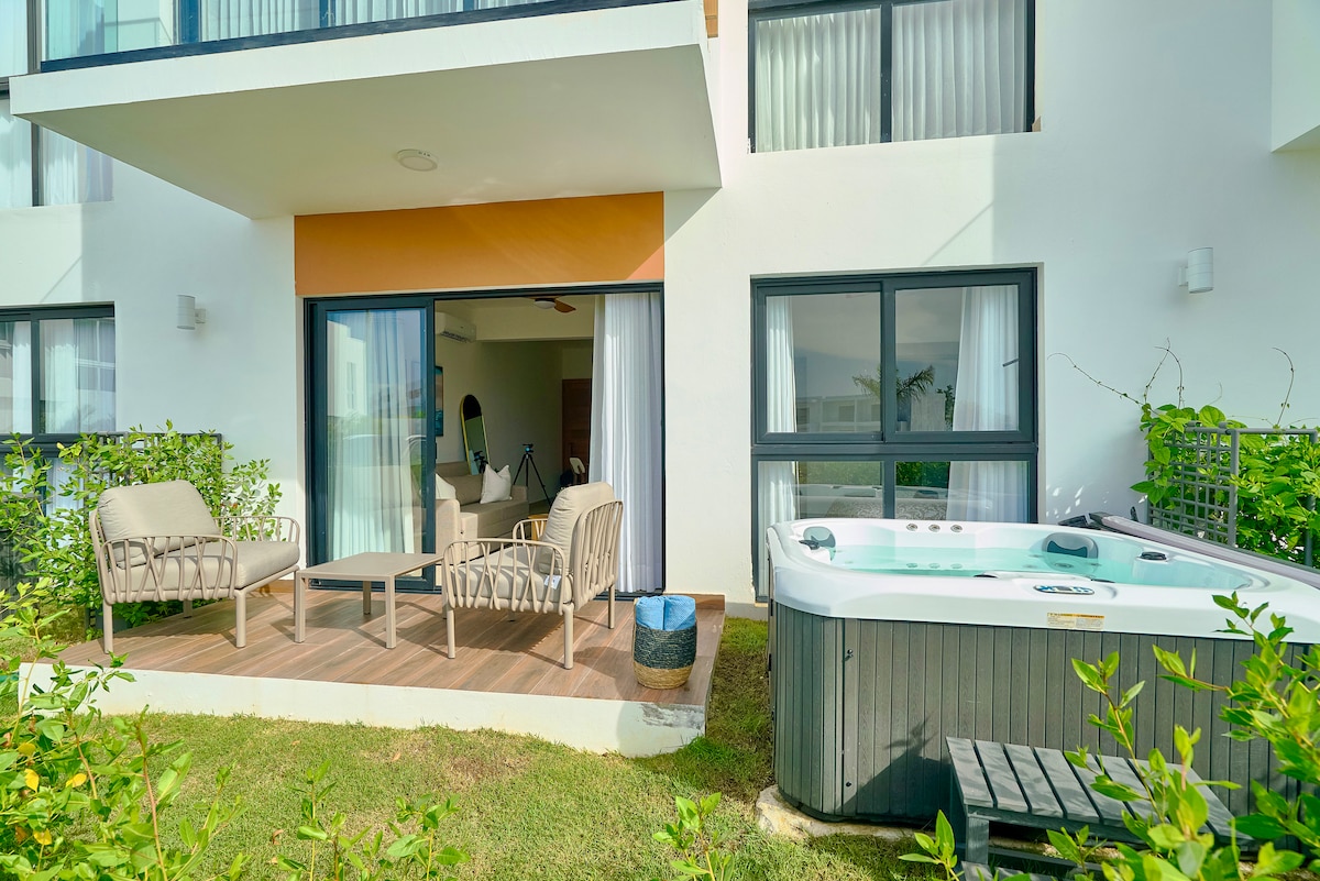 Una forma diferente de disfrutar Punta Cana. Este apartamento en planta baja ofrece privacidad, comodidad y una ubicación privilegiada dentro de uno de los residenciales más completos de la zona. Su amplia terraza privada con jacuzzi es ideal para relajarte y desconectar en un entorno tranquilo y rodeado de vegetación. A pocos pasos, disfruta de la espectacular playa artificial del residencial, tipo resort, y de una excelente conexión con restaurantes, supermercados y Downtown Punta Cana.