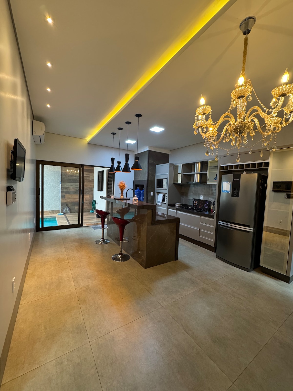 Aconchego de Tangará – ideal para familias. Casa completa, con dos dormitorios (uno en suite), un baño social, una sala de estar con sofá cama, una cocina gourmet equipada, un área de servicio y un garaje para dos autos. Todas las habitaciones tienen aire acondicionado Ambiente espacioso y acogedor, con piscina privada para momentos especiales con familiares o amigos. Perfecto para una estancia cómoda en Tangará da Serra.