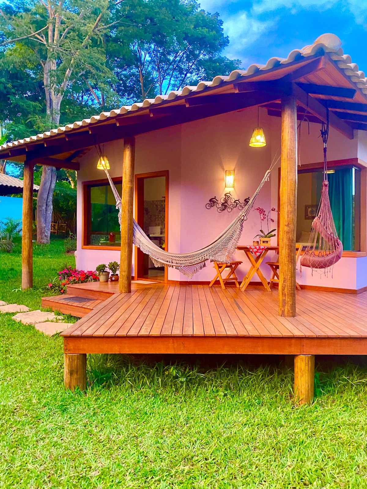 Amplio, encantador y acogedor, el chalet está ubicado en Serra do Cipó, a 100 km de Belo Horizonte y a 70 km del aeropuerto internacional. Con un área privada de 600 m², el espacio está rodeado de vegetación nativa del cerrado, lo que permite a los huéspedes disfrutar de un patio con árboles frutales y escuchar el canto de los pájaros, en perfecta conexión con la naturaleza. Fácil acceso a la zona comercial y a las cascadas de la región. Alojamiento para quienes buscan el contacto con la naturaleza, comodidad y tranquilidad.