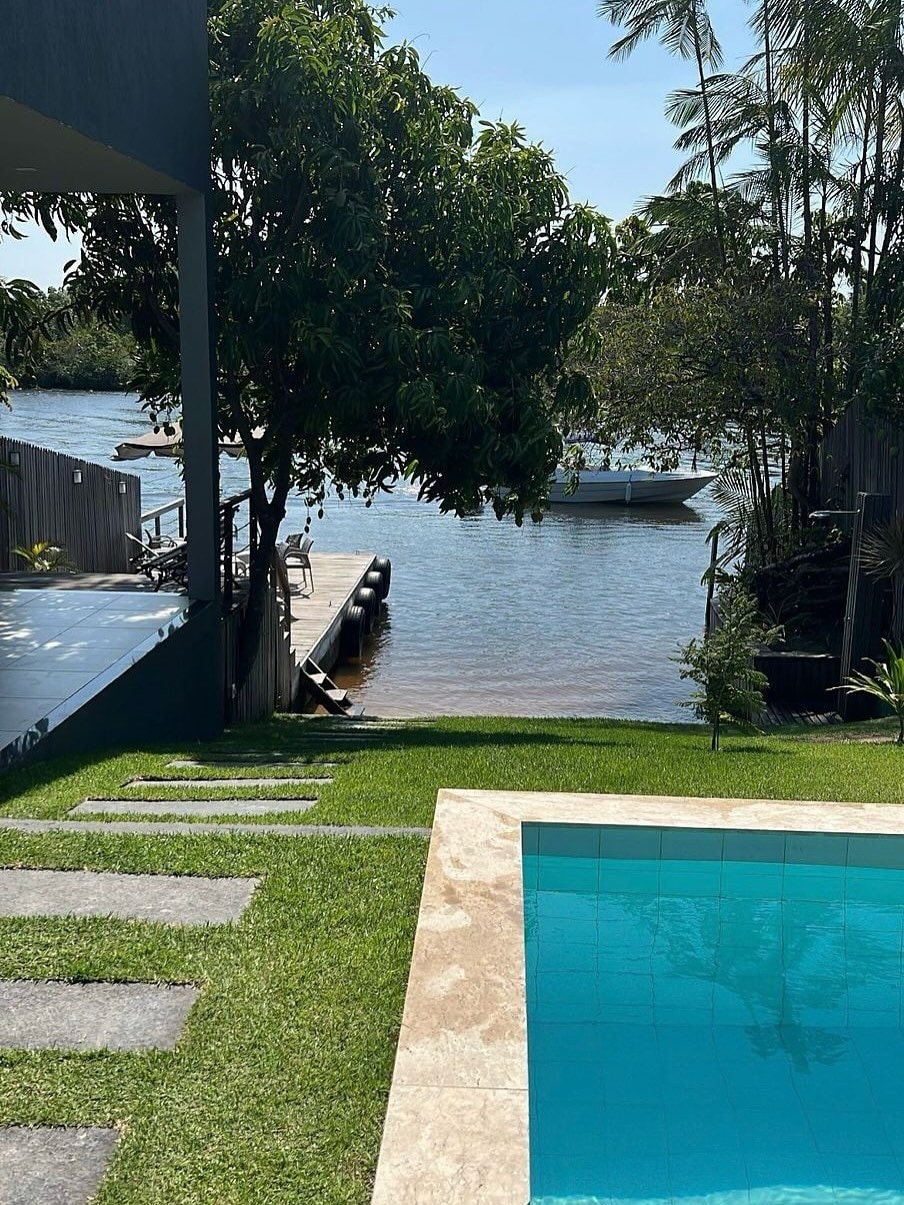 Relaxe com toda a família nesta acomodação tranquila. Desfrute de uma área externa ampla, gramado, piscina, ótimos para crianças e pets, bem como o deck com churrasqueira, grelha, espetos, uma cozinha com geladeira, fogao, micro-ondas, liquidificador, sanduicheira, panelas, pratos, talheres, xicaras e copos, e o conforto de 3 suites com ar condicionado para um sono restaurador. Acordar com o vento nas palhas dos coqueiros, ou observar as estrelas após o anoitecer e ouvir a paz desse lugar.
