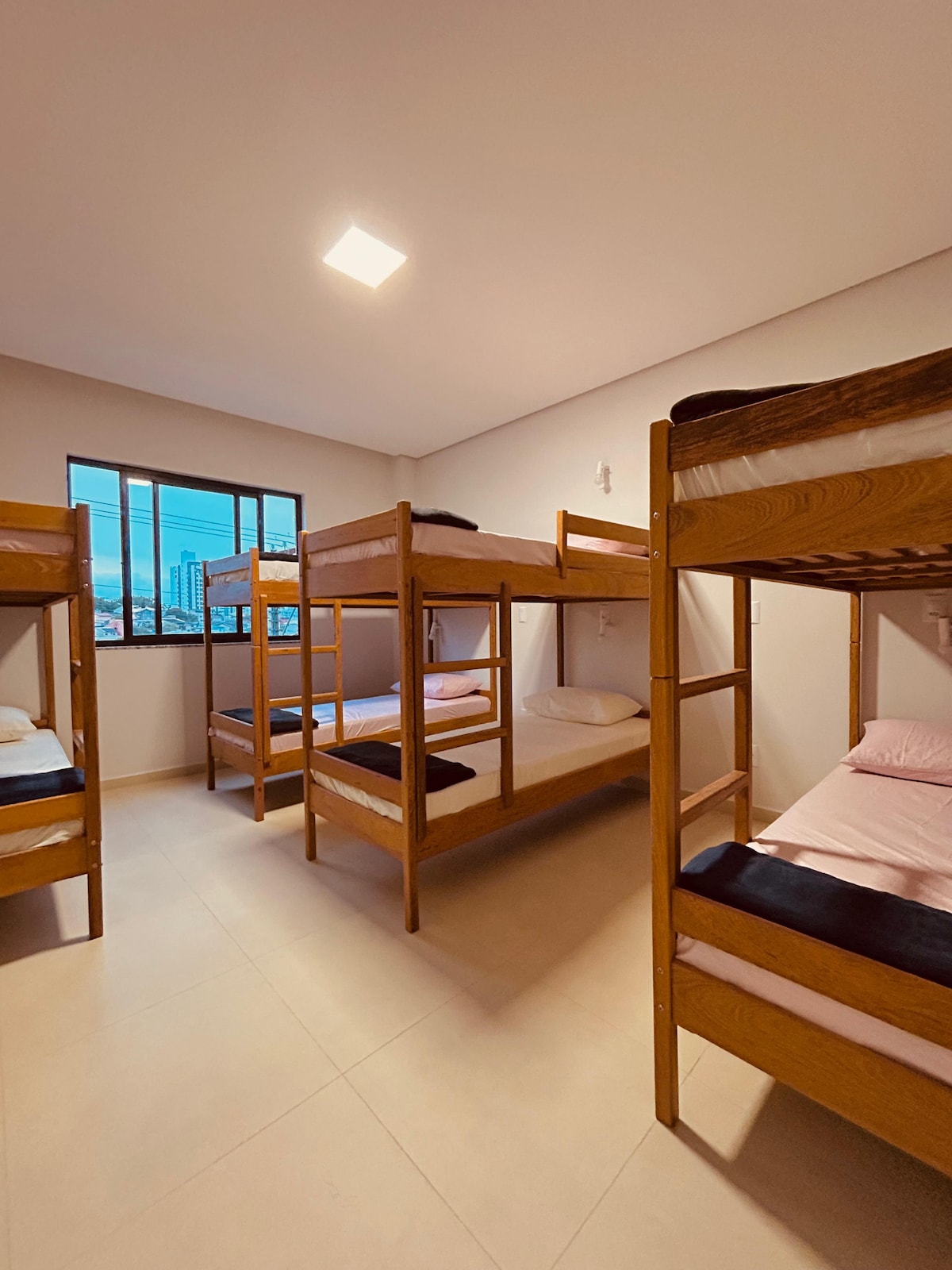 Todas nuestras habitaciones son compartidas con 8 literas. Tenemos 1 dormitorio femenino y 2 dormitorios mixtos donde tenemos 2 camas dobles también en literas. Con atracciones durante todo el año, la refinada e intacta Praia do Rosa es una experiencia increíble. Solo o en grupo, nuestro hostal está preparado para que disfrutes de las playas, senderos, dunas, cascadas, piscinas naturales, bares y simplemente relajarte en nuestra zona de ocio. ¡Ven al HOSTAL DE SURF ROSA!