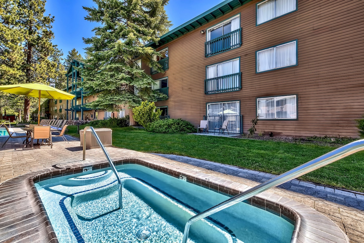 Salga de la ducha de roca del río hacia los pisos del baño con calefacción. Disfrute de un café en la terraza cubierta sobre una hermosa propiedad. Gran base para centros vacacionales cercanos. Tanto los niños como los adultos disfrutan de la sensación de casa del árbol del dormitorio elevado con tragaluz para contar las estrellas. ¡Este apartamento está en una ubicación estupenda! ¡Fácil acceso a la rampa del barco para disfrutar del lago Tahoe! Tres o más playas públicas dos con muelles a pocos pasos del condominio. Vea algunas de nuestras reseñas duramente ganadas. Camina a la ciudad durante todo el año en bicicleta.