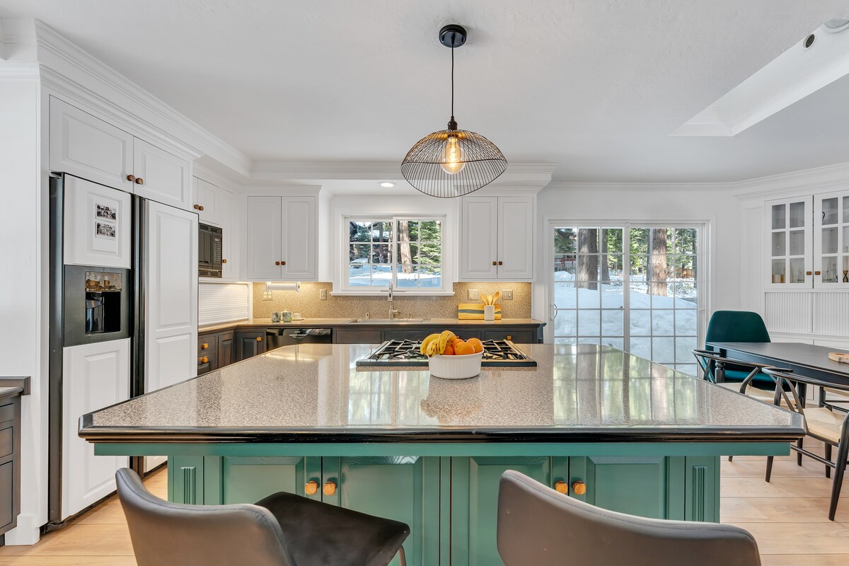 En Tahoe, «acogedor» significa abarrotado y «cabaña» significa viejo. ¡Aquí no! Totalmente renovada y modernizada, esta propiedad es ideal a solo 5 minutos de las playas y a 8 minutos de las pistas de esquí. Ya sea como un elegante refugio para adultos para 1 o más parejas, o un lugar totalmente familiar, ofrecemos extras gratuitos que incluyen: una bañera de hidromasaje para 8+, barbacoa, bar, oficina, garaje climatizado para 2 coches, cargador de coche, cuna, juguetes, colchón inflable queen, lavandería completa, café y aperitivos, ¡todo con un bosque transitable a las afueras de la puerta trasera! Permiso STR: WSTR23-0082