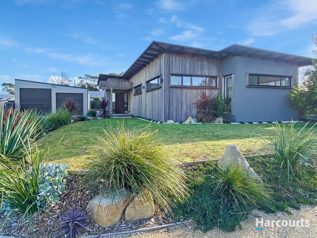Luxury beach house, tucked away in a quiet cul de sac only a 2 minute walk to a stunning east coast beach and 10 mins to the St helens Mountain Bike park. You will enjoy a stroll to the beach for fishing, surfing, snorkeling or a relaxing walk! 10mins up the road and you will be riding world class mountain bike trails. 25 min to Bay of Fires. The beach house faces north to get all day sun and is very sheltered, there are two decks to sit and enjoy the sunshine and a refreshing drink