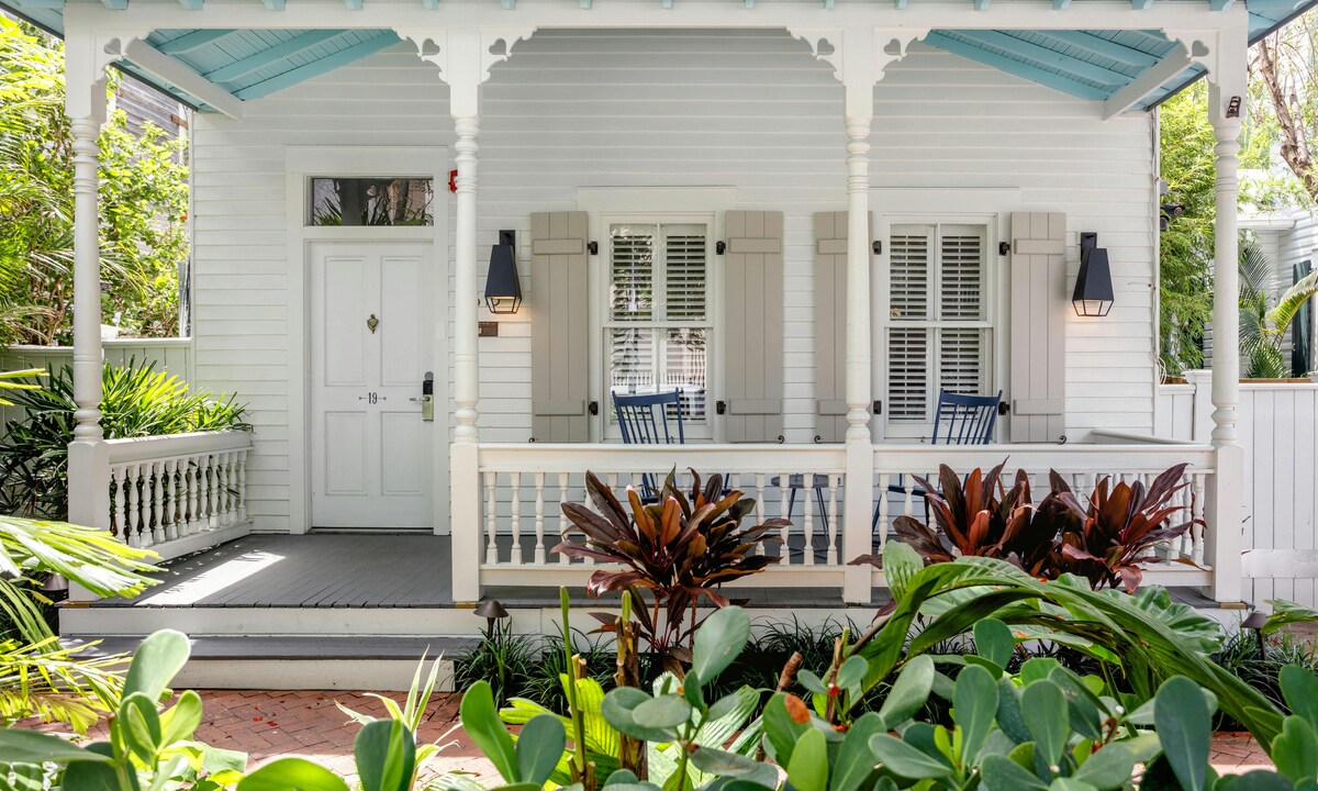 ***21 y más*** Disfruta de este encantador hotel ubicado a 2 cuadras del Historic Wharf y a 4 cuadras de Duval St. Esta habitación está a pocos pasos de nuestra piscina principal y equipada con una cama tamaño king con ducha a ras de suelo, cafetera Keurig, TV, patio y mininevera. ¡Escapada romántica perfecta para 2! Comparte un pequeño patio con la habitación vecina. ¡Nuestra propiedad tiene 2 piscinas, exuberantes jardines, áreas de estar, desayuno de cortesía y todos los servicios que necesitarías para disfrutar de Cayo Hueso!