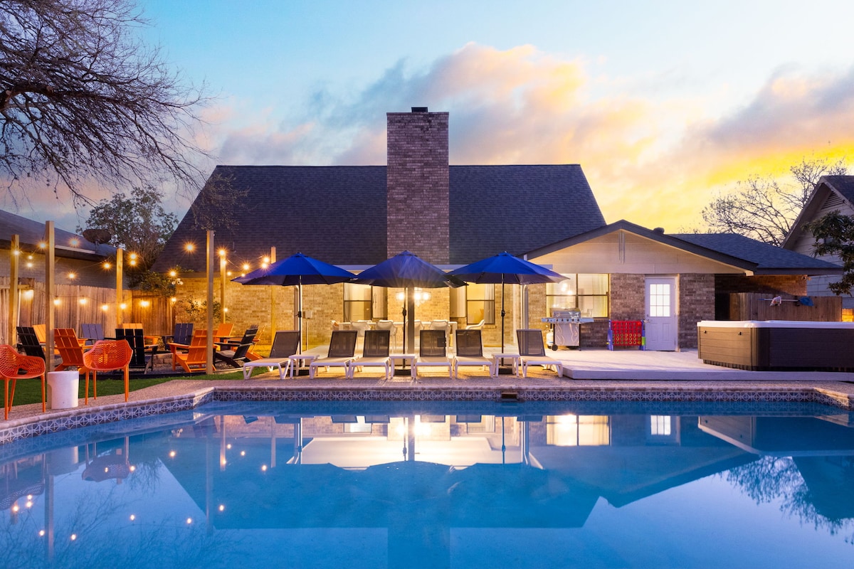 Welcome to Alamo Oasis Estate part of Alamo City Retreats a house perfect for a large family or group of friends. Relax in the pool awhile or enjoy the hot tub after a long day out exploring the city. Just want to stay in? No problem! Have an outdoor movie night with the projector or watch a game outside, play games in the game room, or eat together as a family with ample seating for everyone. With 4 spacious bedrooms, everyone has space to relax at the end of the day.
