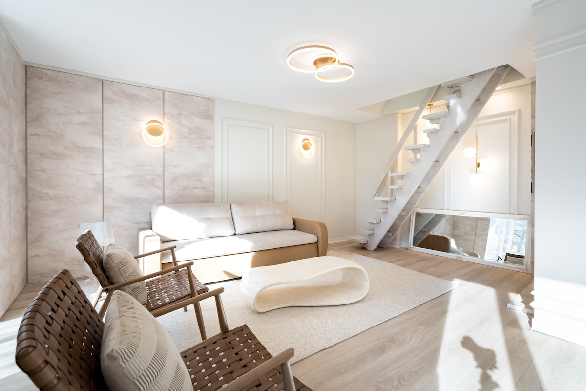 ¡Disfruta del encanto de nuestro loft urbano en el corazón de la ciudad! Disfruta de la paz en nuestro elegante dormitorio, con amplias ventanas que llenan la habitación de luz solar, y acomódate en un lujoso baño de mármol. Ubicado en un barrio encantador, este acogedor espacio ofrece una cocina totalmente equipada, una relajante sala de estar y un pequeño balcón. Perfecto para el viajero moderno que valora el estilo y la comodidad. Reserva tu estancia, deléitate con los lujos sencillos y haz de este loft tu escondite personal.