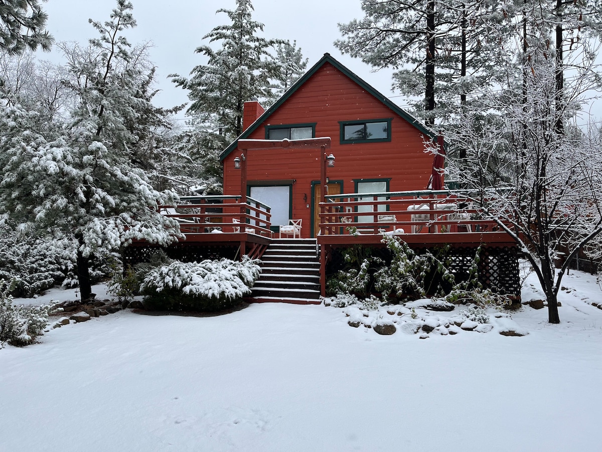 Welcome to Wander Wild. A modern meets rustic mountain escape nestled in the trees on a private road. Ideal for small families, couples and friends looking for a peaceful getaway. Rustic charm, with many modern updates including a renovated kitchen, new furnishings, EV charger and high speed WiFi (if you can't unplug). The built-in cedar hot tub on the deck is a perfect spot for stargazing. Great location, only a 5 minute drive to town, a quick walk to hiking trails. Find your new happy place.
