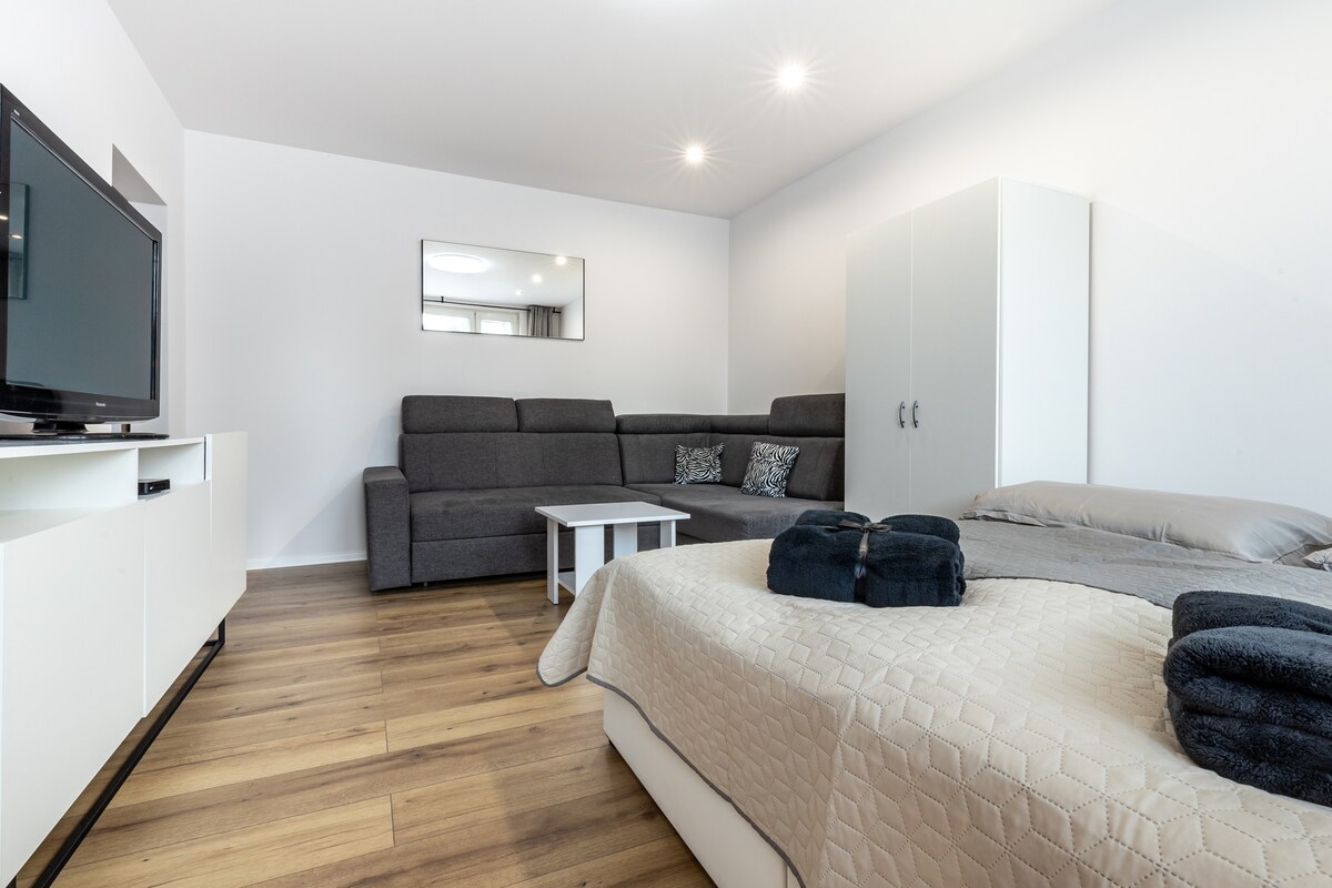 Café☕️, comodidad y tranquilidad: tu pequeño hogar cerca del centro. El departamento está amueblado con muebles nuevos y una cocina totalmente equipada, donde hay un pequeño refrigerio (refrigerios, frutas, bebidas) disponible para cada huésped🍎 También el baño está equipado con secador de pelo y cosméticos. Este departamento en el centro de la ciudad, desde donde tienes acceso a todas partes a pie... hay un hospital, autobús, estación de tren a 10 minutos, tienda por departamentos Aupark y Main Street a 5 minutos... Justo al lado de la cuadra hay supermercados, quiosco, floristería.