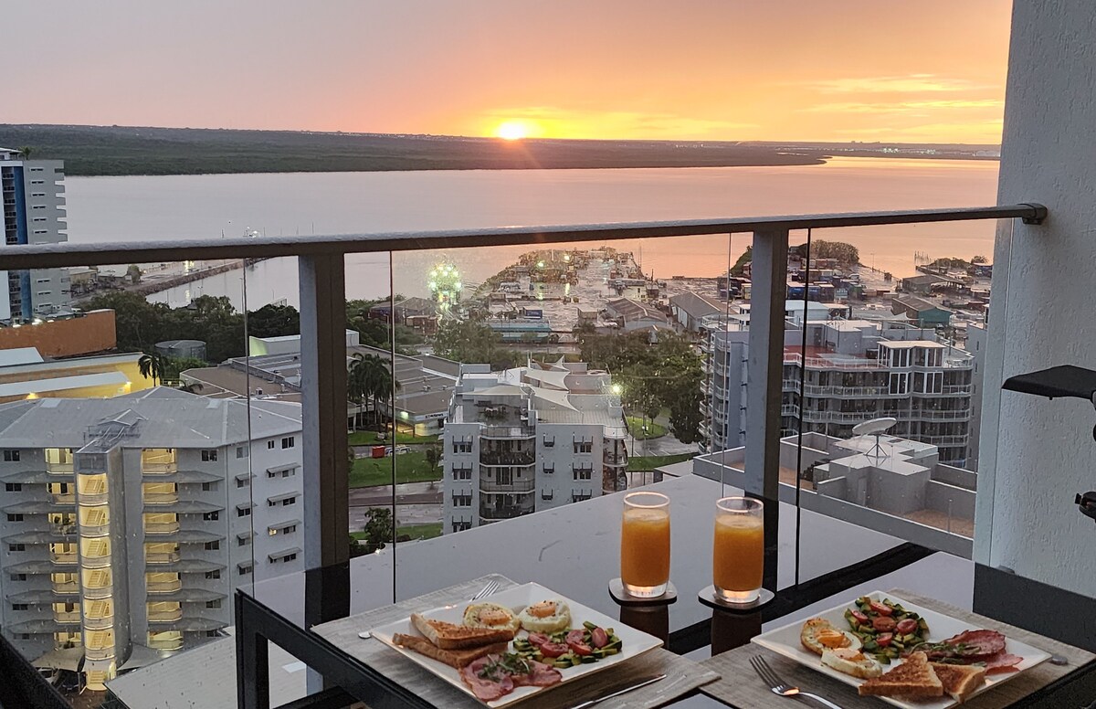 Despiértate con vistas de postal sobre el puerto de Darwin y el horizonte de la ciudad desde la privacidad de tu propio balcón. Escondido dentro de un complejo moderno en el corazón del CBD, este estudio céntrico y elegante está construido especialmente para la comodidad. - Instalaciones de té y café en la habitación, con cafeterías, restaurantes frente al mar y el famoso mercado al atardecer de Mindil Beach, todo a pocos pasos. - Televisión inteligente, wifi rápido y aire acondicionado - Acceso seguro al ascensor y estacionamiento en el lugar (sujeto a disponibilidad y tarifa). - Incluye acceso a la piscina y al gimnasio.