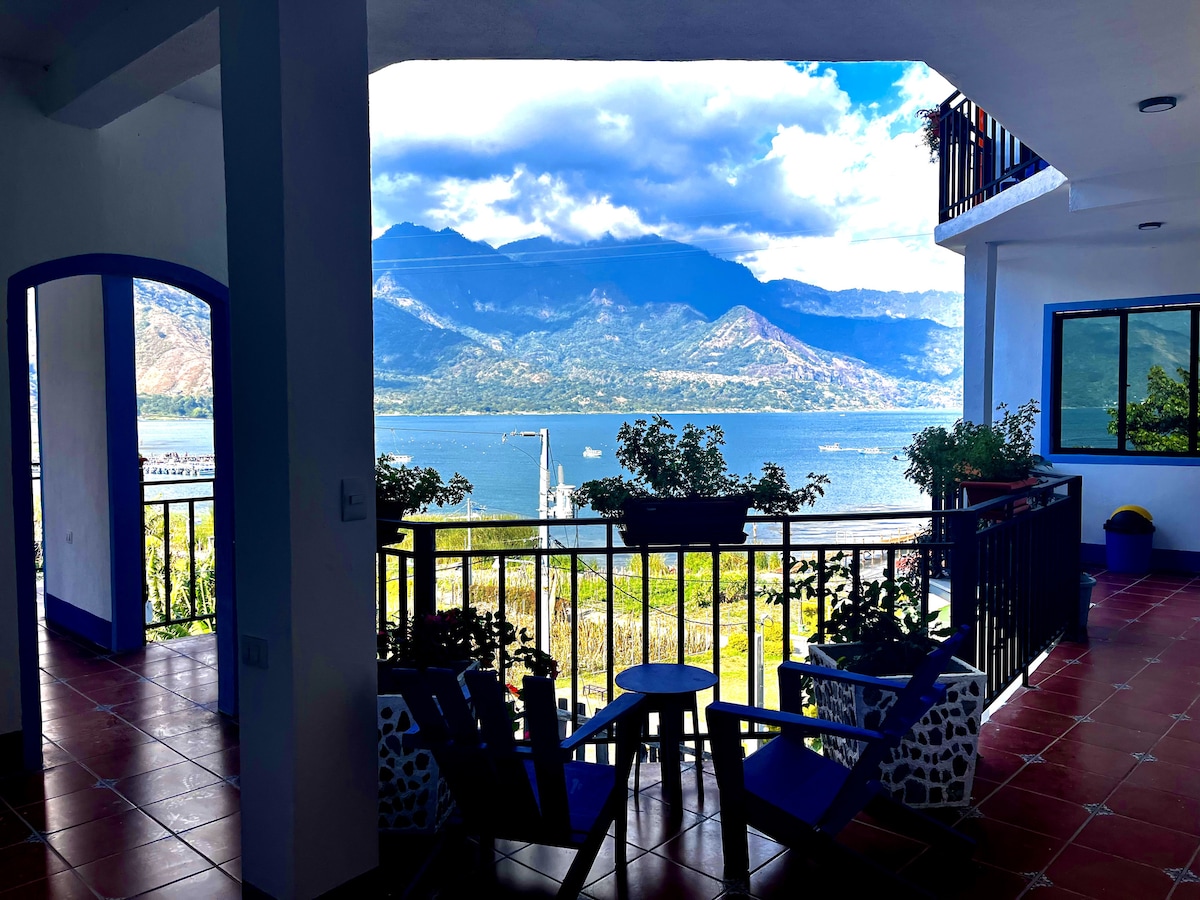 Hermosa y tranquila habitación con vistas a la montaña del lago Atitlán en el cálido y acogedor San Pedro. En una gran terraza del segundo piso a 5-7 minutos a pie del muelle principal. La habitación 10 tiene una cama doble, baño privado y espacio exterior dedicado con plantas, mesa de comedor y otros asientos. Hay buena conexión wifi. Junto con el restaurante al aire libre en la planta baja encontrarás muchos otros restaurantes a la vuelta de la esquina, como italiano, chino, fusión india, cocina guatemalteca, cafeterías y mercados artesanales.