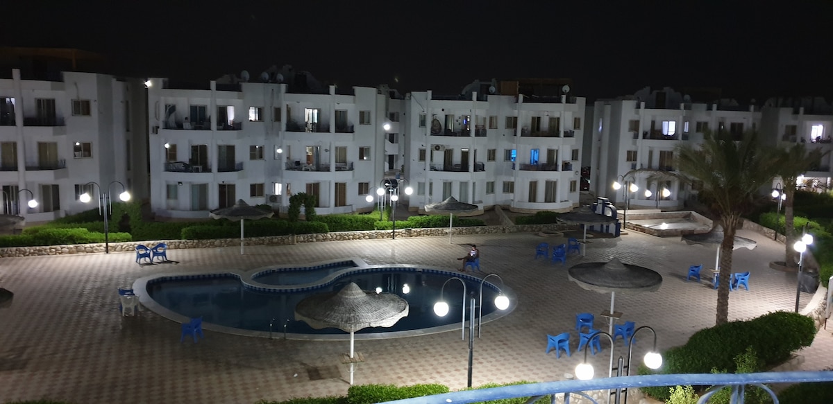 2 big bedrooms, 1 big reciption +2 toilets Sea , pool & mountin view Fully air conditioned , , bbq on beach servies , washin machine house keeping & supermarket is available + Near by recriations center (porto sokhna) Free parking is available. Note: Hijab and borkini is not allowed by the swimming pool.