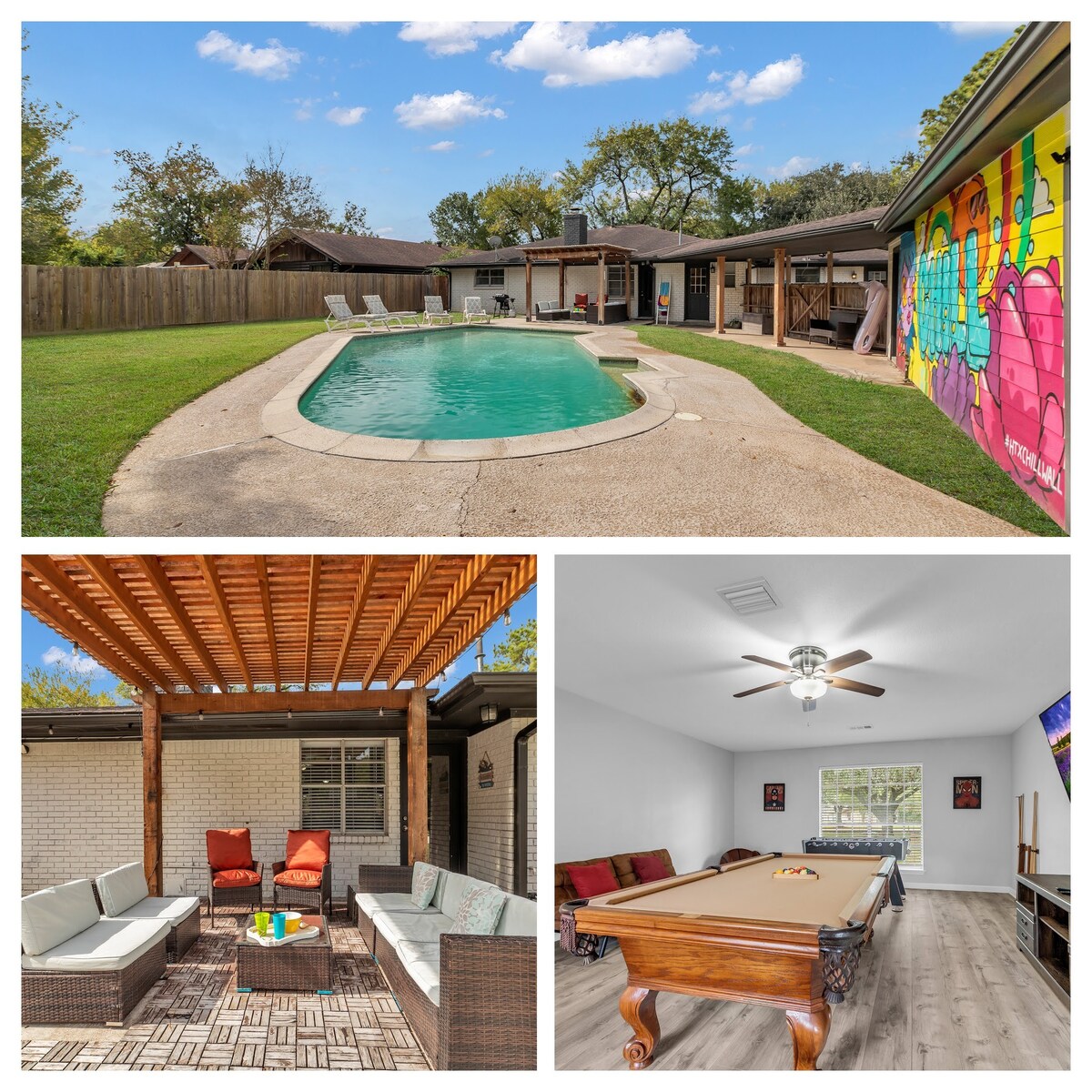 ¡Relájate en nuestra lujosa, relajante y espaciosa casa en una de las ubicaciones más convenientes de Houston! ✔ Sin cortes de energía. ✔ Piscina con canasta de baloncesto. Piscina ✔ bien iluminada. Piscina ✔ climatizada y spa. ✔ Barbacoa ✔ PaknPlay y habitación para bebés. ✔ Grandes televisores 4k con múltiples transmisiones Juegos de✔ mesa Mesa de✔ billar. ✔ Patio con muebles y comedor. ✔ Perfecto para estancias largas, grupos grandes y eventos. Wifi ✔ rápido y espacio de trabajo dedicado. Limpieza y desinfección✔ profesionales. Cocina ✔ Totalmente Equipada ✔ Lavandería Habitación para✔ bebés.