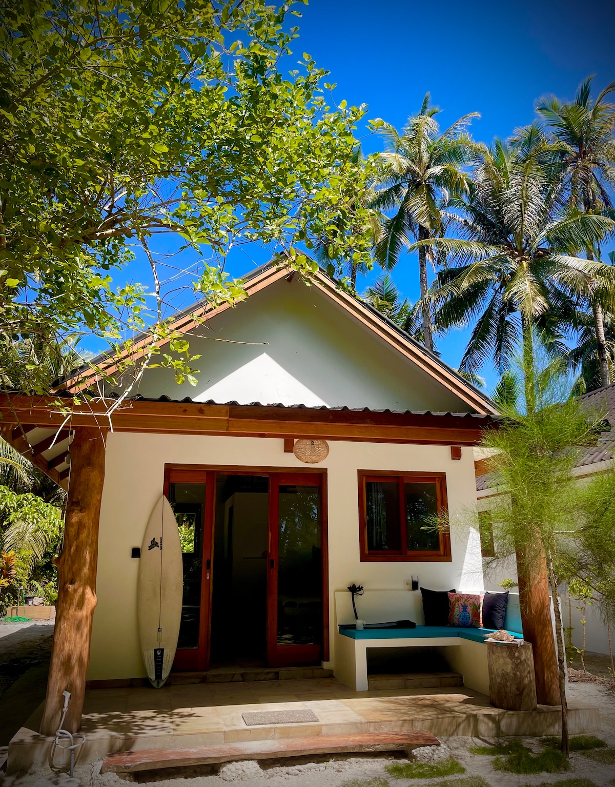 Relájate en un jardín privado a la sombra a 5 pasos de la playa, tendrás una de las dos villas autónomas rodeadas de árboles y jardín. Los huéspedes disfrutan de nuestro acceso a la playa y la cabaña para ver las olas y tomar cafés o barbacoas, a solo 5 minutos a pie de remar en el descanso principal de HTs (Lances's Right) más al menos otras 5 olas a 10 minutos en scooter. Compra suministros en el pueblo, cocina en tu propia cocina o incluso cena fuera, tienes la libertad de personalizar tus vacaciones.
