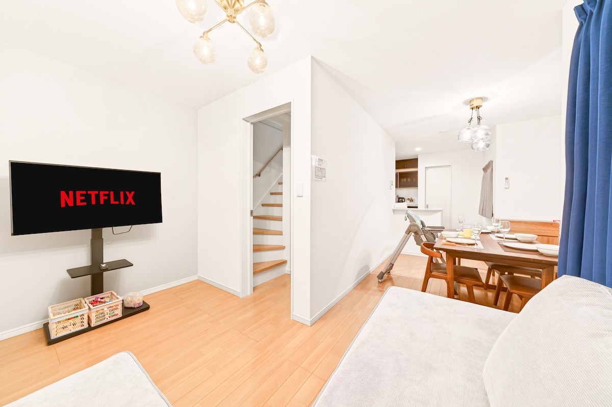 Esta es una casa completa que puede alojar hasta 10 personas, ubicada a 6 minutos de la estación de Higashimojima, Sumida-ku, Tokio.Hay 3 habitaciones en 1F y 3F, 5 cómodas camas dobles y una cama de bebé también se coloca en la habitación 1F.También podemos proporcionar 1 cochecito de bebé de forma gratuita para los huéspedes que viajen con bebés. La habitación es muy luminosa, cálida y cómoda, la habitación es muy cómoda, por lo que es muy adecuada para familias y grupos. Totalmente equipado con electrodomésticos como refrigerador, arrocera, cafetera, horno, humidificador, etc., TV a color de 55 pulgadas para ver programas de televisión japoneses locales y televisión por Internet como Netflix.Una lavadora totalmente automática con función de secado puede hacer que la ropa se seque y se sienta cómoda incluso durante la temporada de lluvias. Ubicación perfecta, fácil acceso a Asakusa y Skytree sin traslado de la estación al aeropuerto de Narita por hora.A 3 minutos a pie de un supermercado y una tienda de conveniencia, y a 6 minutos a pie de la estación de Tokashima más cercana.Alrededor de la estación hay una farmacia y una tienda de verduras y frutas, así como una cafetería, etc. La casa se encuentra en una zona residencial relativamente tranquila con restaurantes locales como izakaya y tiendas de ramen a pocos pasos, para que puedas disfrutar plenamente del encanto local de Tokio. ¡En definitiva, fue un alojamiento fantástico para toda la familia!Te damos la bienvenida a ti y a toda tu familia para descansar aquí en el ajetreado itinerario y experimentar los sabores de Japón mientras disfrutas del hermoso paisaje de Japón.