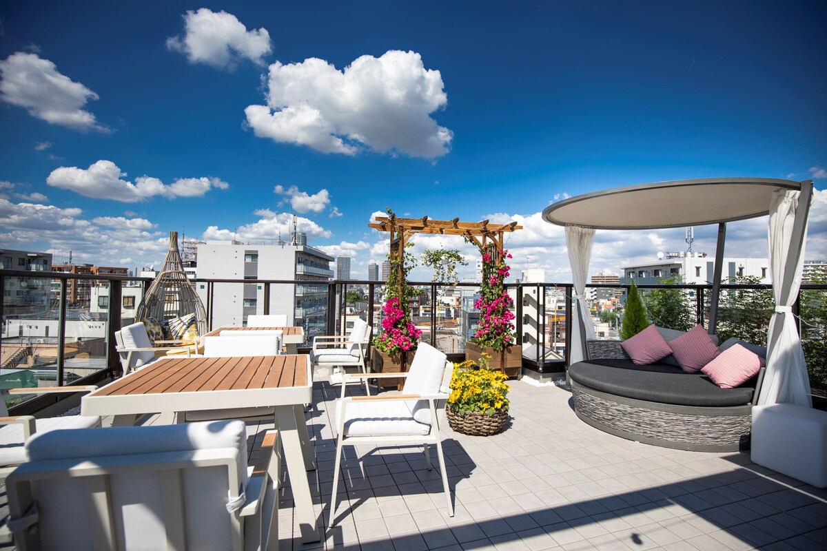 Inaugurado recientemente en marzo de 2019, el Sola Hotel está construido con muebles de madera japoneses personalizados, papel tapiz japonés artesanal único y decorado con un toque moderno. Disfruta de la hermosa vista de la torre Skytree de Tokio desde nuestro salón en la azotea, un entorno único en el centro de Tokio. Todas las habitaciones y suites incluyen cocina de servicio completo con todos los utensilios, nevera, TV y wifi gratuito. Todas las bebidas de la nevera son gratuitas. Nuestras suites ofrecen un balcón al aire libre con una bonita zona de estar para tu disfrute privado.