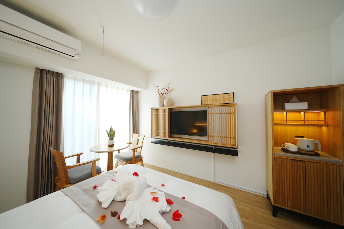 Departamento de 7 pisos de ★nueva construcción, estructura de hormigón armado, con ascensor, a 550 metros de la salida A3 de la estación de Oshang, 1K, tamaño de unos 25 metros cuadrados, 1 cama doble, se puede agregar cama individual, última configuración de muebles de madera maciza, electrodomésticos, sábanas, toallas de baño, pantuflas.El Aparthotel se compromete a proporcionar a los residentes una estancia cómoda y agradable y su atención a la limpieza de las habitaciones.