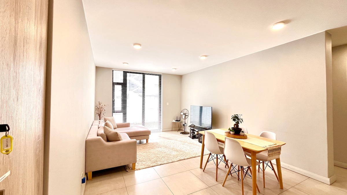 Elegante apartamento independiente con comodidades de lujo y estacionamiento gratuito, ubicado en Summerstrand, a 4 minutos caminando del paseo marítimo. El apartamento cuenta con una cocina totalmente equipada, baño moderno, amplio espacio en el armario y una estación de trabajo designada para la productividad. Relájate en el balcón o disfruta del entretenimiento en la Smart TV desde un entrenador de cuero. Ofrecemos artículos básicos de cortesía durante un máximo de dos días, incluidas cápsulas de lavandería, bolsas de basura, champú, gel de baño, café, té y azúcar.