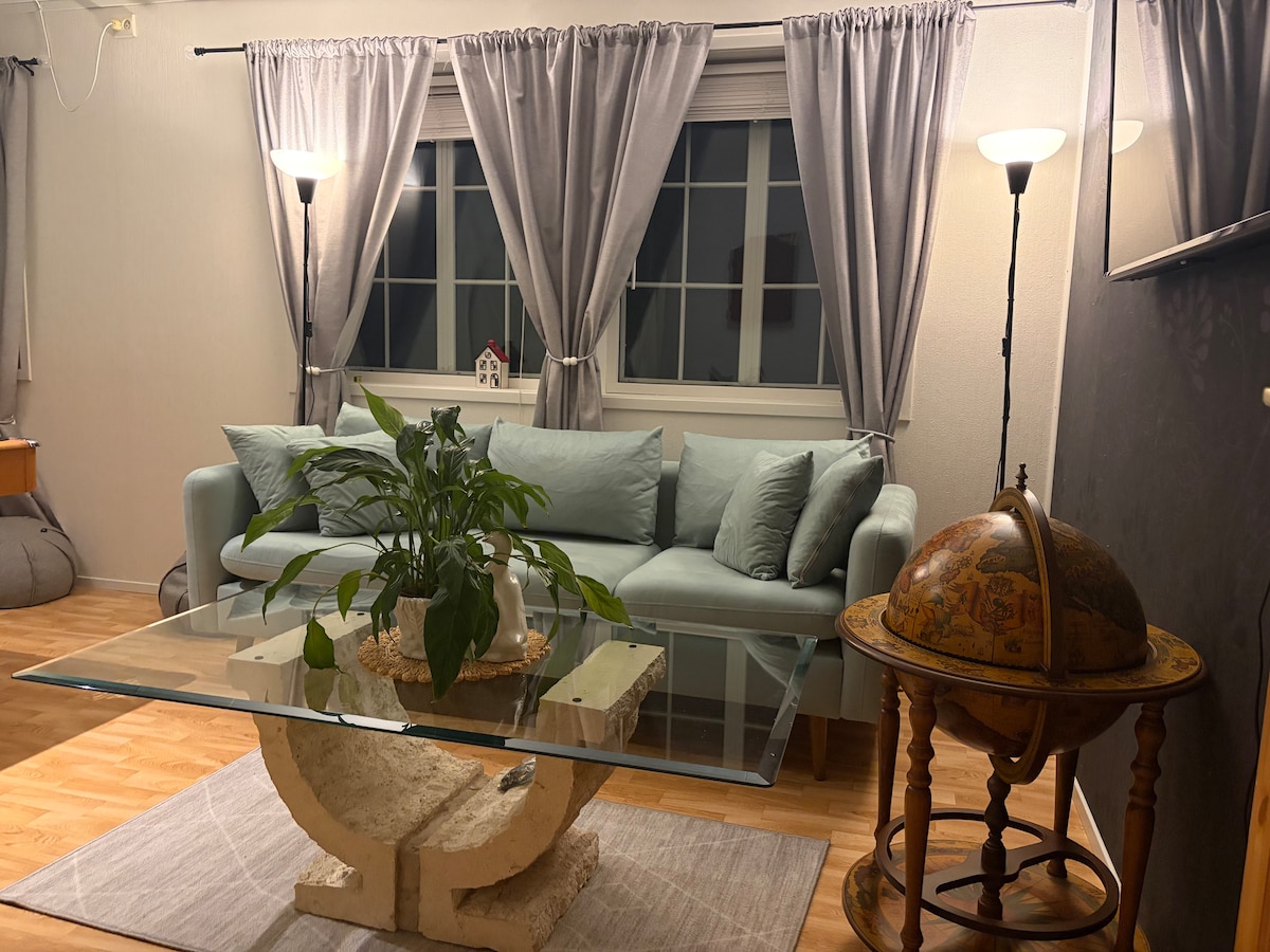 Apartamento de 3 habitaciones en la ciudad de Førde. 2 dormitorios, 1 baño, cocina, sala de estar, balcón. El centro de la ciudad de Førde está a un par de minutos. Aparcamiento gratuito en el exterior del edificio de apartamentos. 1 cama tamaño king (180 x 200 cm) en dormitorio separado, para 2 personas. 2 camas normales (90 x 200 cm) en dormitorio separado. Son dos camas separadas, pero juntas como una cama doble. Para 2 personas. 1 sofá cama (140 x 200 cm) en el salón. Para 1 o 2 personas. Actualización 2025, nueva y mejorada conexión a Internet de alta velocidad por fibra/wifi :)