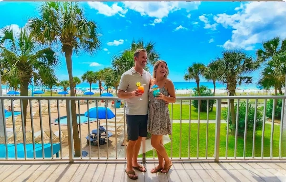 Two-bedroom beachfront condo at Tropic Winds! Close to Pier Park, very family-friendly. Renovated and professionally decorated! The 2 bedroom, 2 bathroom unit boasts 1200 sq ft of beautiful living space with an updated kitchen. TV sets in every bedroom. 1 King & 2 Queen beds, very comfy! Extra large, furnished balcony, offering breathtaking views of the ocean waters and the softest white sand on the gulf coast. Condo has 2 beach chairs & umbrella setup daily for you until October 31!