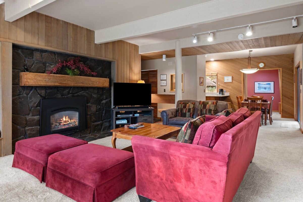 Acogedor y actualizado condominio ubicado a pocos pasos de Sunriver Village. Sal por la puerta principal y encontrarás café fresco, pasteles, cerveza, comestibles, patinaje sobre hielo o minigolf (dependiendo de la temporada), ¡y todo lo demás que el pueblo tiene que ofrecer! El sendero para caminar/andar en bicicleta está detrás de la casa, lo que te lleva a todo Sunriver, incluyendo el albergue, el Centro de la Naturaleza, el Parque Fort Rock, los establos, el puerto deportivo o SHARC (una piscina/jacuzzi), que también está a solo 2 minutos en auto. A partir de junio de 2025, ¡también tenemos aire acondicionado y calefacción nuevos!