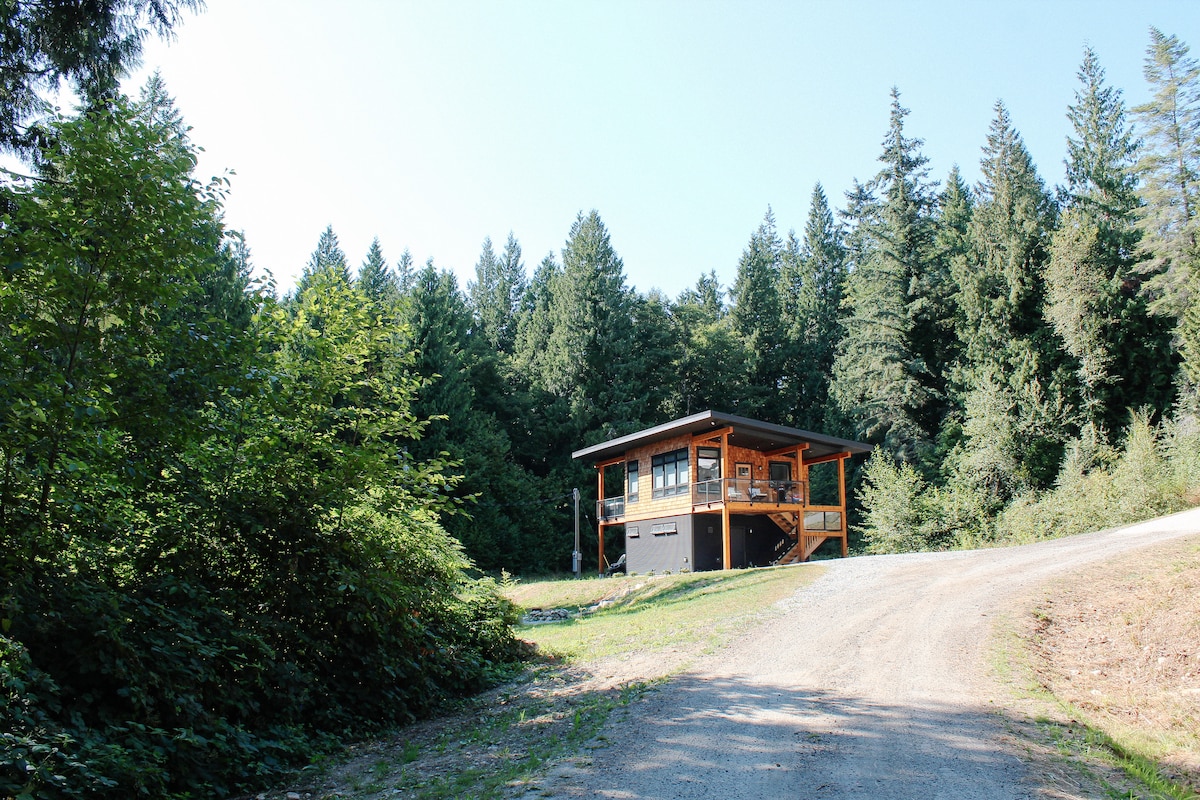 Disfruta de una experiencia con estilo en esta cabaña céntrica en Upper Gibsons. La Cosmic Cabin es un espacio de 1 dormitorio recién reformado en nuestra propiedad de 2,5 acres en Reed. La cabaña es un hogar super moderno, privado y relajado lejos de casa. A poca distancia a pie de muchos servicios: transporte público, Gibsons Park Plaza, Sunnycrest Mall, Persephones y todos los restaurantes y tiendas a lo largo de la autopista 101. ¡Disfruta de tu estancia en nuestra cabaña cósmica enclavada en los árboles!