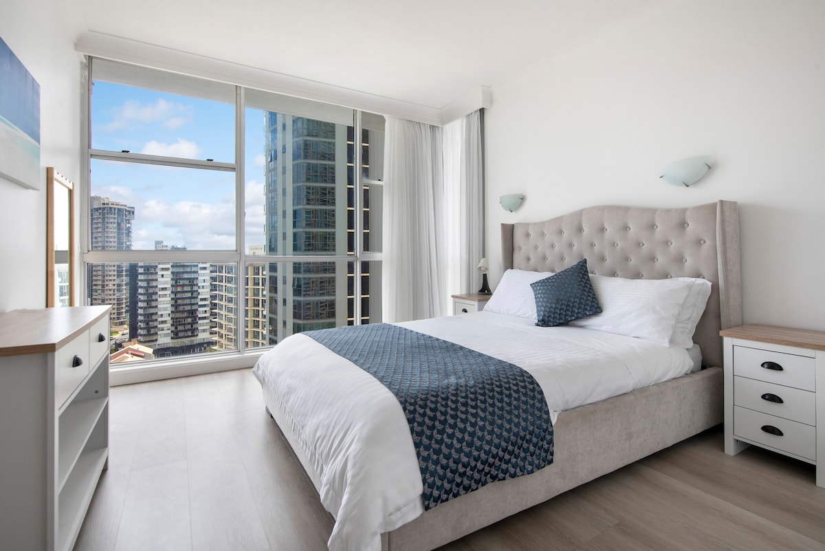 Te damos la bienvenida a nuestro impresionante alojamiento con vistas increíbles de Surfers, de día o de noche. ¡Somos uno de los pocos que ofrecen estadías de 1 noche! Lee nuestras evaluaciones que muestran que a los huéspedes les encanta la cama KING súper cómoda, un baño único y una cocina con una despensa totalmente equipada para cocinar bricolaje. También ofrecemos llegada a Netflix, Wifi y AH. Nota: el estacionamiento seguro en el sótano será una tarifa adicional cotizada con anterioridad La colección de llaves está a 2 calles de distancia. Ten en cuenta que GoldCoast estará en construcción a partir de 2025.