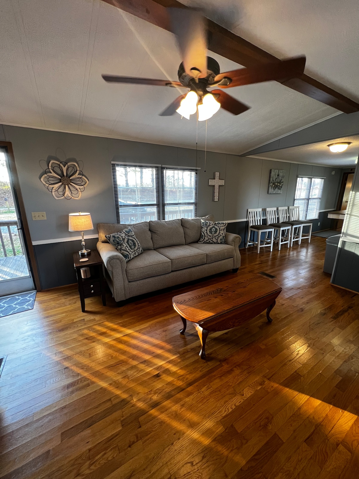 Laura's Mayberry Home es una hermosa y distintiva casa antigua de 2 dormitorios (uno con una cama tamaño king, el otro con una cama tamaño queen) y 1 baño que ha sido completamente reformada. Ubicada en un barrio tranquilo, pero a la vuelta de la esquina del centro de servicio de Wally, a dos manzanas del anfiteatro Blackmon y a solo tres manzanas del centro de la ciudad y de Snappy Lunch. ¡LMH es el lugar perfecto para disfrutar de tus días y tus noches!