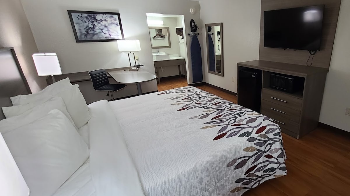 Relájate en esta gran habitación con balcón en el Suwannee Gables Motel, ¡tu joya escondida en la costa natural de Florida! Disfruta de más de 300 pies de frente al río con muchas áreas de estar, un muelle flotante, alquileres de kayaks, tablas de paddle y pontones, ¡además de un lanzamiento de botes cercano! Justo al final del camino del parque estatal Fanning Springs y cerca de buceo, ciclismo y senderos de clase mundial. Trae tu equipo, relájate junto al río, nada en la piscina y descubre por qué los huéspedes nunca quieren irse. ¿Necesitas más espacio? ¡Más habitaciones disponibles para grupos más grandes!