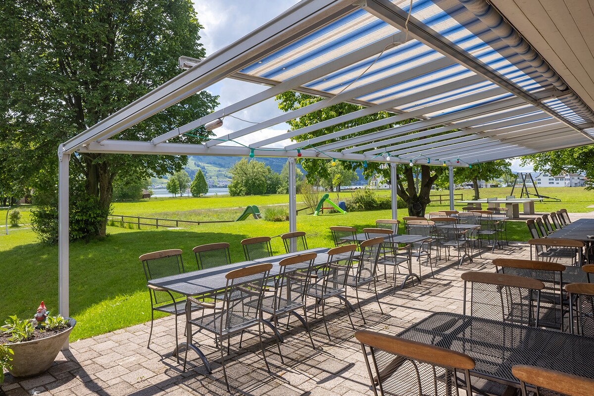 Casi no tiene sentido ponerse las gafas de sol antes de llegar al moderno albergue, ya que está a solo dos minutos a pie de la estación de Scuol-Tarasp, y lo mismo ocurre con los postbuses y el teleférico a la zona de esquí y senderismo de Motta Nalun.Hay una larga y variada lista de actividades para familias, así como para los amantes del deporte y la naturaleza: ¿te gustaría probar el queso lácteo alpino de la región o el agua mineral directamente de la fuente del pueblo? ¿O relajarte en los baños termales de Bogn Engiadina?