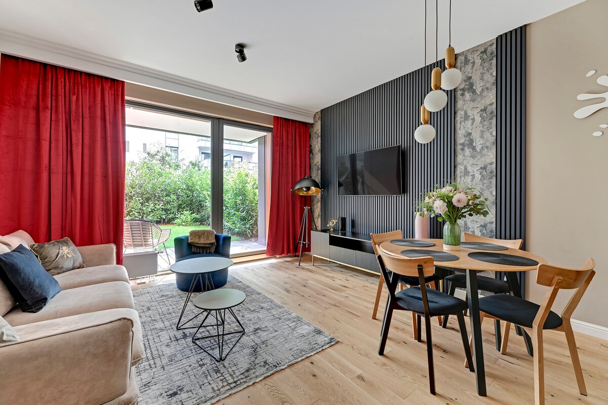 Elegante apartamento en Gdańsk Brabank con jardín y vistas