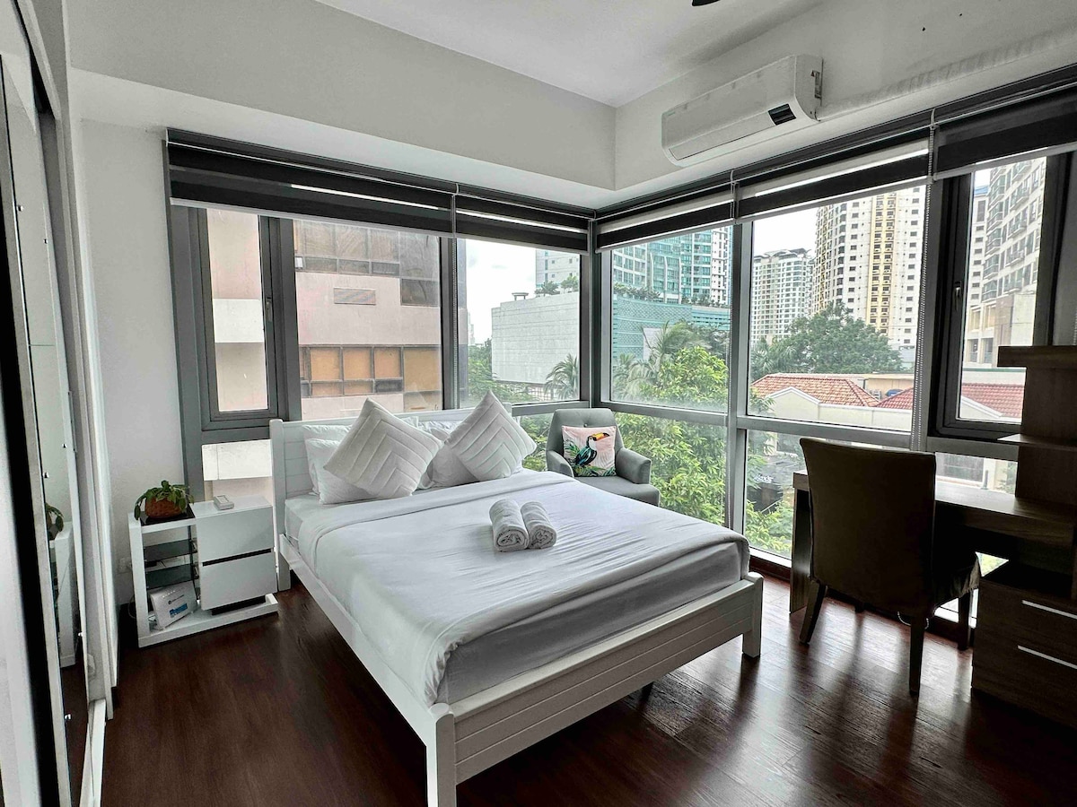 Uptown BGC 2BR | Vista de la unidad de esquina | Camas tamaño queen