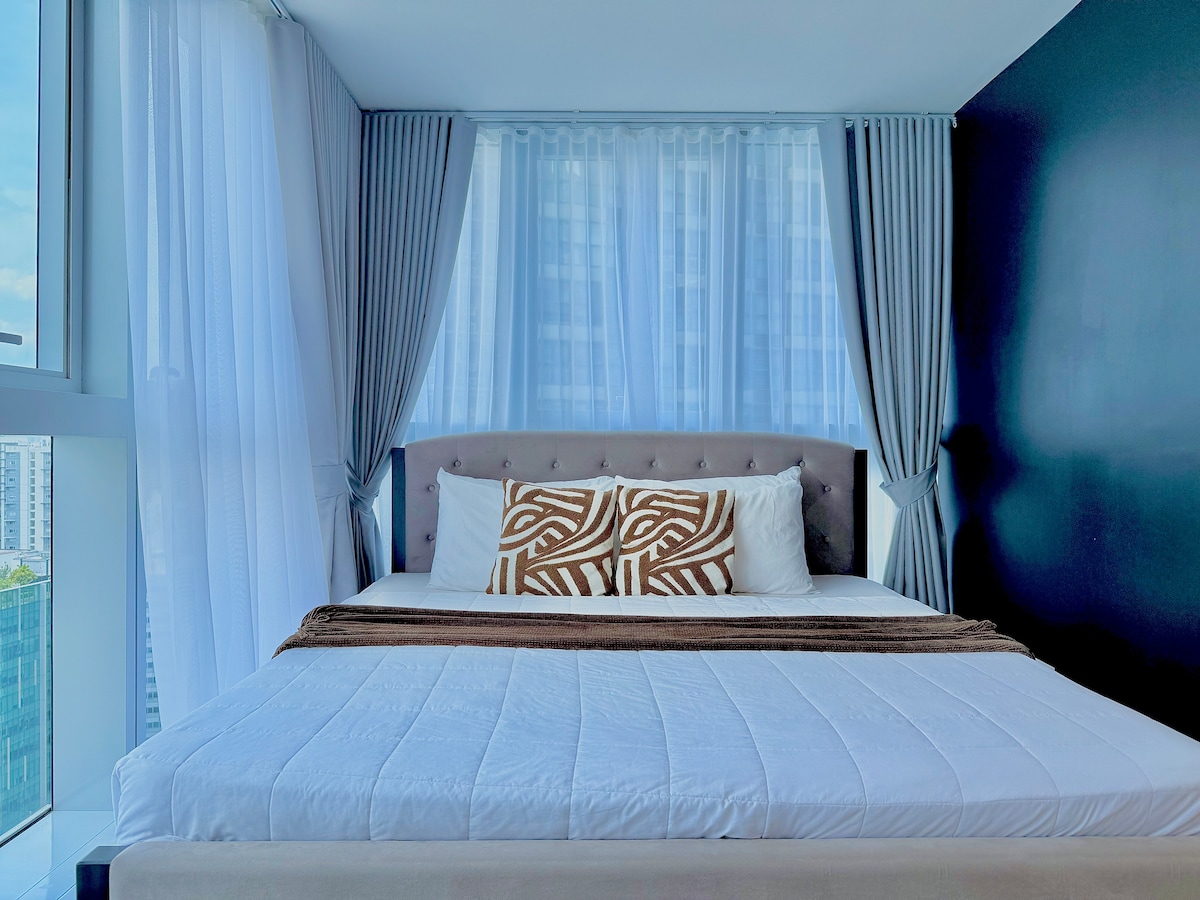 Ofrecemos una unidad totalmente amueblada de 36 metros cuadrados ubicada en Mosaic Tower. Velocidad de internet de 100 Mbps. Baño privado con calentador de agua, cama tamaño king. Smart TV con Netflix. Pequeña sala de estar. Nevera Hervidor eléctrico. Olla arrocera Cafetera Microondas Aire acondicionado secador de pelo Lavadora y secadora Ropa de cama/sábanas/toallas completas. Vajilla/cristalería/cubiertos/utensilios de cocina completos y NUEVOS Accesorios completos de limpieza y lavandería Artículos de aseo. Techos bajos con múltiples luces en cada habitación.